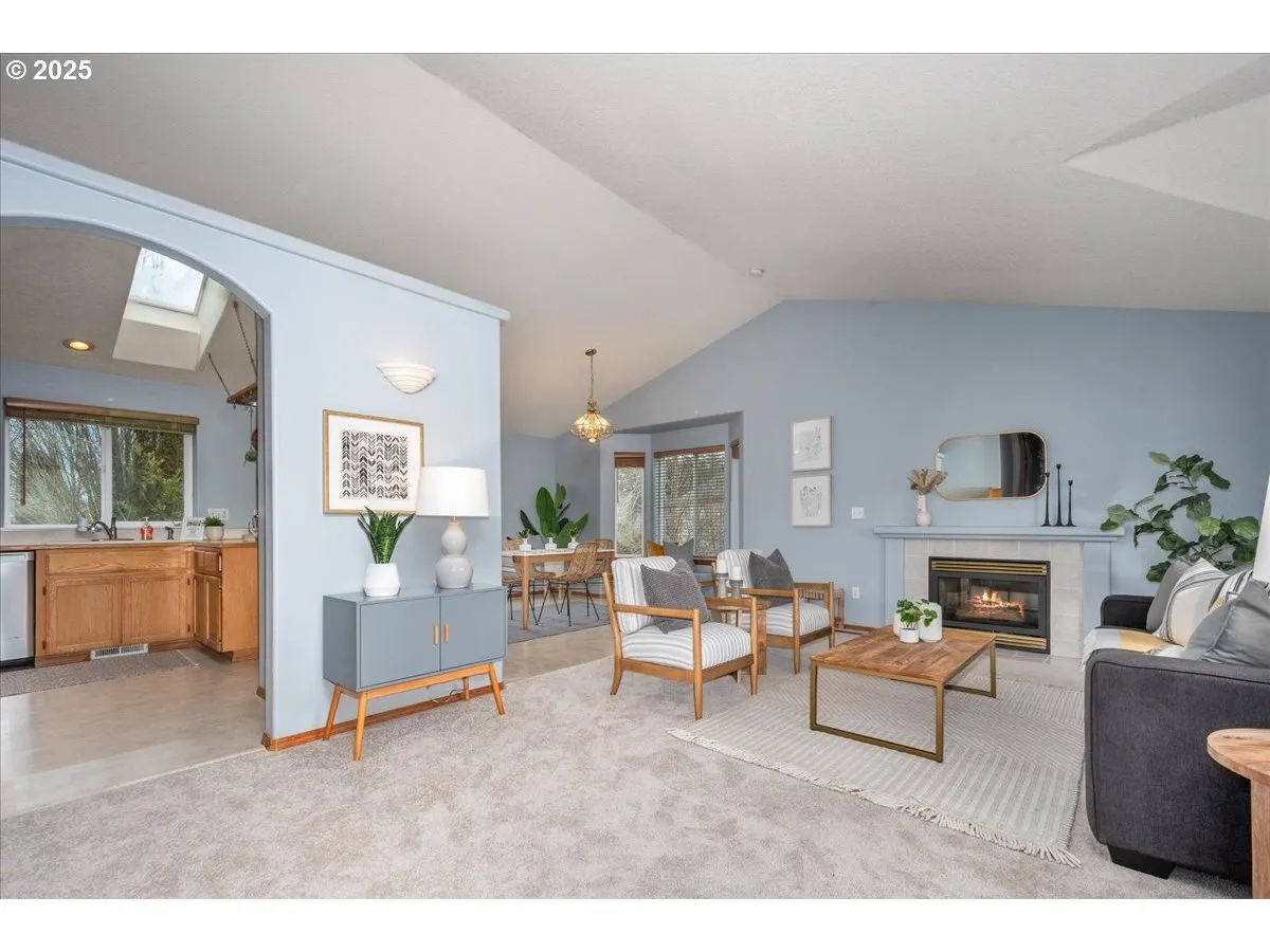Fabulous Tri-Level Home with vaulted ceilings & expansive yard – just one mile from historic Downtown Troutdale! Privately situated in a peaceful cul-de-sac, this move-in ready home offers the perfect blend of comfort, space, and investment potential. With 3 bedrooms and 2 1/2 bathrooms, a huge living room PLUS lower level bonus room this thoughtfully designed home maximizes functionality. Step inside and be greeted by soaring vaulted ceilings and cozy fireplace, a modern layout with great architectural interest. The open-concept living and dining areas adjoin the kitchen – a beautiful space that will make everyday living feel special. Natural light pours in through large windows, it’s a bright and airy atmosphere with tree top views. Tri-level homes are ideal for modern lifestyles, offering distinct yet connected spaces that provide flexibility for families, guests, or work-from-home setups. You’ll find spacious bedrooms on their own level which creates privacy. While the lower level is a versatile bonus space with a slider to the backyard — makes a great bonus or entertainment room, or home office space. Brand new carpet! Fresh interior paint! Almost all new fencing! You’ll love the huge back & side yards; endless possibilities for play, garden & pets. Your own private oasis…or host summer barbecues, cultivate your garden & veggies, add a play area, or let the pets take over! This private yard provides is the perfect canvas. Located in the friendly, small-town charm of Troutdale, Oregon — the “Gateway to the Gorge.” Just minutes away, explore historic downtown Troutdale, filled with local boutiques, cafes, Good Coffee, and art galleries. Outdoor lovers will appreciate quick access to the Columbia River Gorge, where breathtaking waterfalls, scenic hiking trails, and world-class fishing and wind surfing await. Just a 23 minute drive to downtown PDX, airport. Don’t miss this well-priced home in an outstanding location…wonderful opportunity for a lucky next owner.