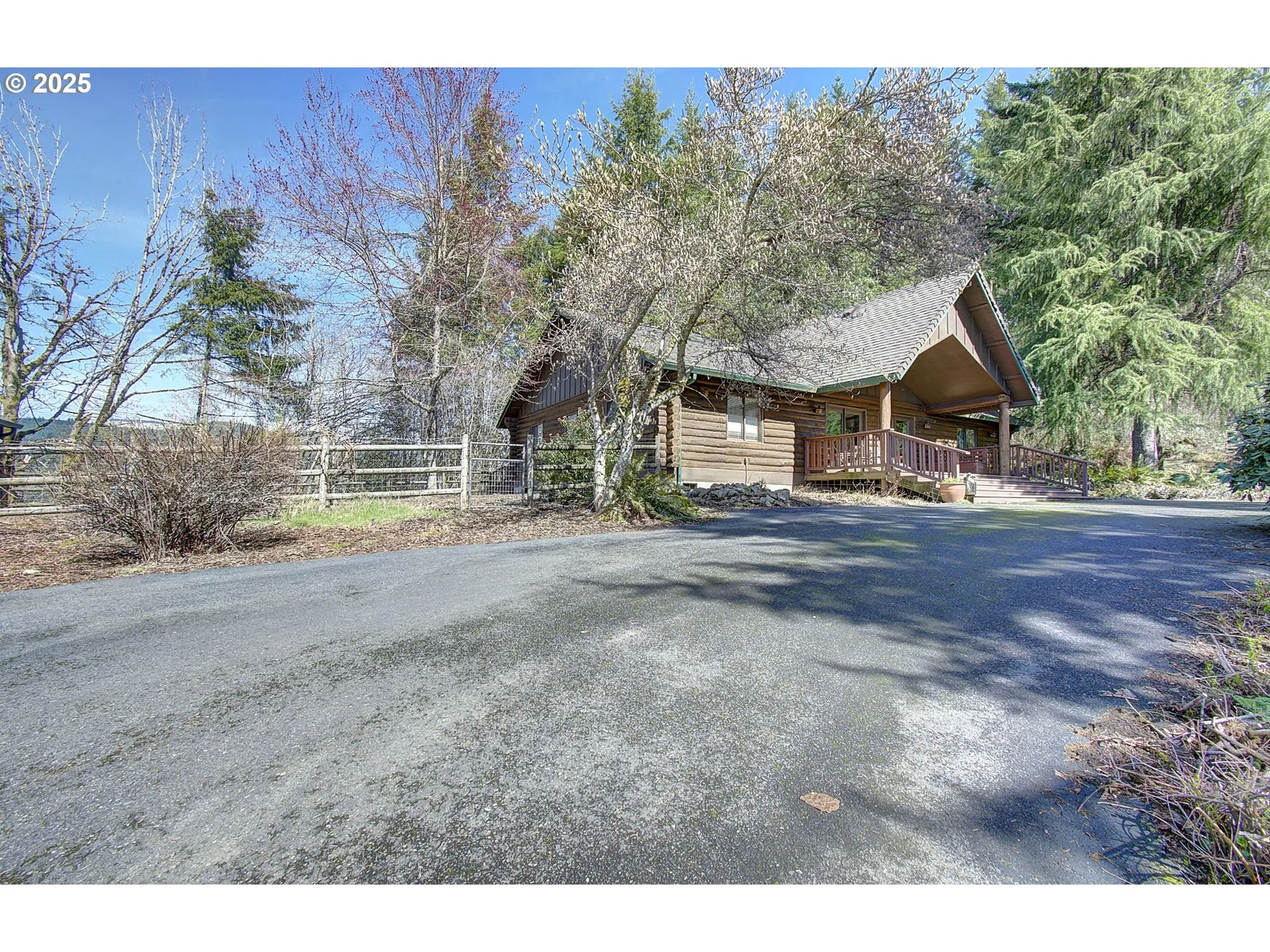 VIEWS! VIEWS! VIEWS! Plus fully furnished & equipped for self sufficiency! All furniture, tools & Kubota included in sale! This charming log home combines rustic charm with modern comforts. Perched on 5 acres, gaze over the hills and valleys below from the back deck, watch for browsing deer from the front deck, and watch the sun set on Mount Tum-Tum to your south. Step out your front door & hike or hunt over the neighboring thousands of acres of woods that Pacificorp has set aside for elk habitat. Prior to the current owners, this home was a successful AirBNB & it is obvious why it was so popular. This open layout single-level home offers 3 bedrooms, each with its own full bathroom. A state-of-the-art wood stove will keep you toasty on cool nights, while the high-efficiency heat pump will keep you cool all summer. An automatic standby generator provides security & comfort. Internet & satellite service make it easy to work or school from home. The high-volume well provides the sweetest water you will ever taste. Outside you will find 1,550 square feet of hard-scaped terraced garden beds ready for you to plant vegetables. Both the garden and the mature orchard of apple, plum, pear & hazelnut trees are surrounded by 8’ elk fence. There is a garden shed that doubles as a chicken coop. And the icing on the cake is the greenhouse with heater for you to get a head start on growing your own veggie starts. Additional buildings include a tool shed & garage. Driveway was just regraded. Also the septic has just been serviced and pumped. The gated entry provides an extra layer of privacy & security. Whether you’re seeking a quiet retreat, an outdoor enthusiast’s dream, investment property or a great place to raise a family, this home has it all. Located just an hour from Portland and with easy access to Amboy, Battleground & Woodland, this property offers the perfect balance of seclusion and convenience. Ask for The Features List as there are just too many to list here.
