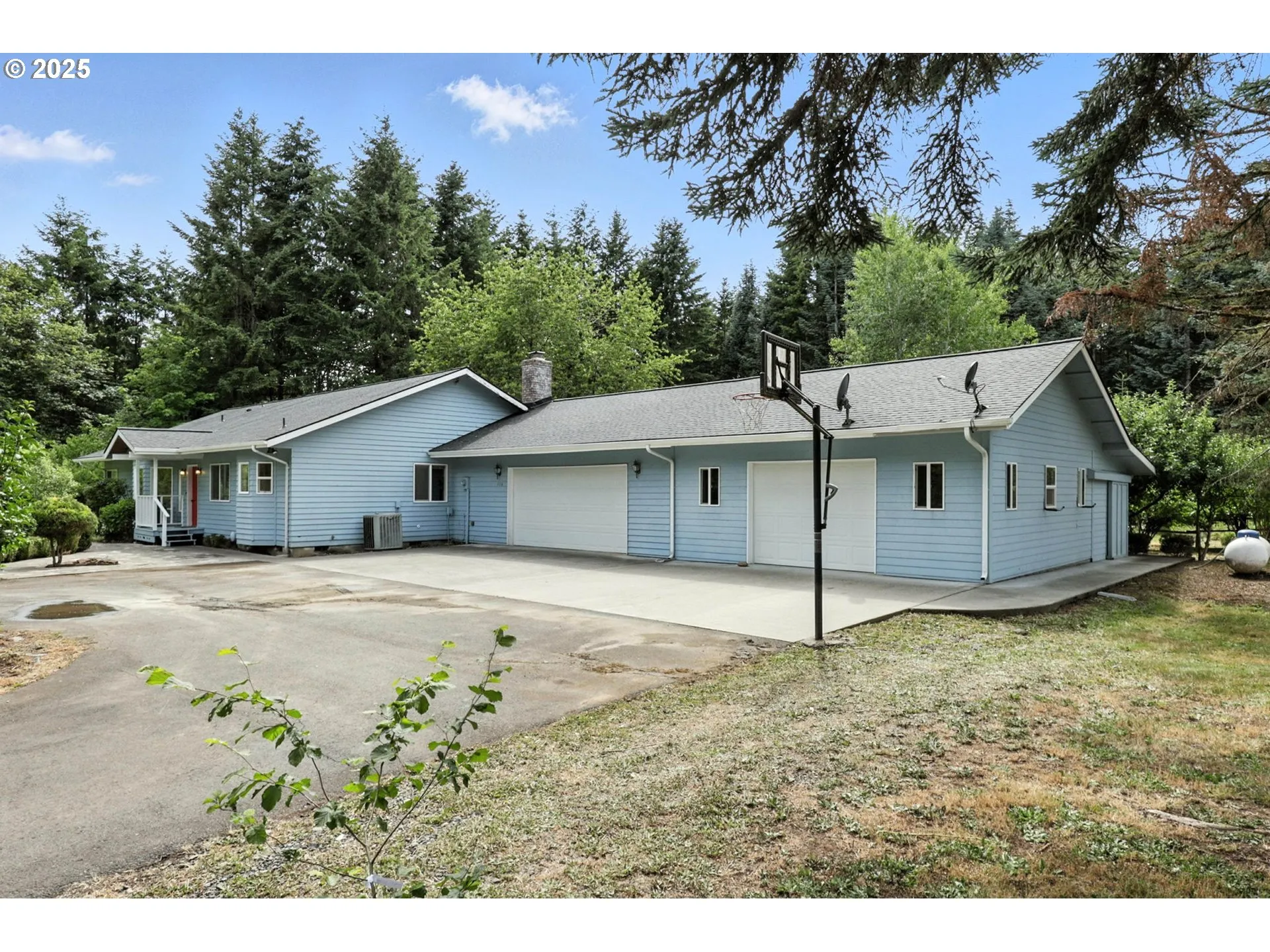 Enjoy peace, space, and fresh air on this beautiful 5-acre property just minutes from town and only 10 minutes to the freeway. This well-kept home offers over 2,000 square feet with three bedrooms, two bathrooms, and a flexible layout. Inside, you’ll find durable LVP flooring throughout the main living areas, a wood-burning fireplace with custom shelving, and a bright, spacious kitchen with plenty of storage and work space.The bonus room with wood-paneled walls and skylights makes a perfect spot for hobbies, a home office, or extra living space. A large laundry room and good-sized bedrooms add comfort and practicality.Outside, the property really shines. There’s a mature orchard with apples, cherries, plums, berries, and grapes, plus a greenhouse, fenced garden area with raised beds, and a chicken coop. The oversized 2-car garage includes a workshop area and extra storage. A long driveway adds privacy, and there’s plenty of room for equipment or RV parking.A peaceful setting with room to grow, just a short drive to everyday conveniences.
