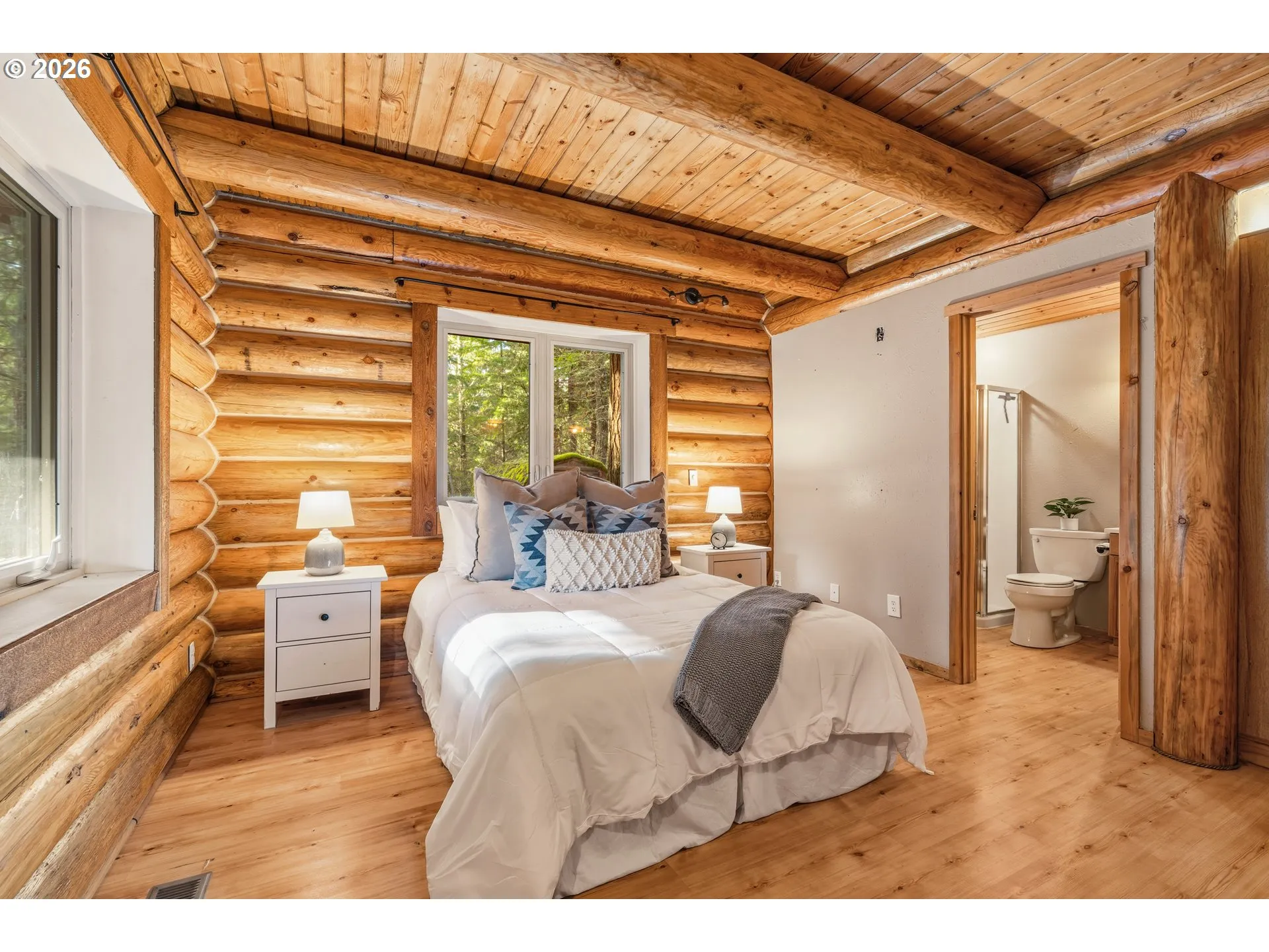 Tucked beneath a canopy of towering firs, this beautifully maintained log cabin offers a true forest retreat in the heart of the Gifford Pinchot National Forest—perfect for full-time living or a peaceful getaway. Wraparound porches invite quiet mornings with coffee and relaxed evenings surrounded by nature. Inside, warm wood tones and thoughtful design create a cozy yet functional layout featuring two bedrooms and two bathrooms, including an oversized primary suite. The kitchen blends rustic charm with modern convenience, showcasing granite countertops, hickory cabinetry, and generous workspace. A soapstone wood stove provides inviting warmth and ambiance throughout the home. Set among trails, wildlife, and endless outdoor recreation, this lovingly cared-for cabin delivers rare privacy while remaining just about an hour from Portland. A special opportunity to own a timeless mountain escape.