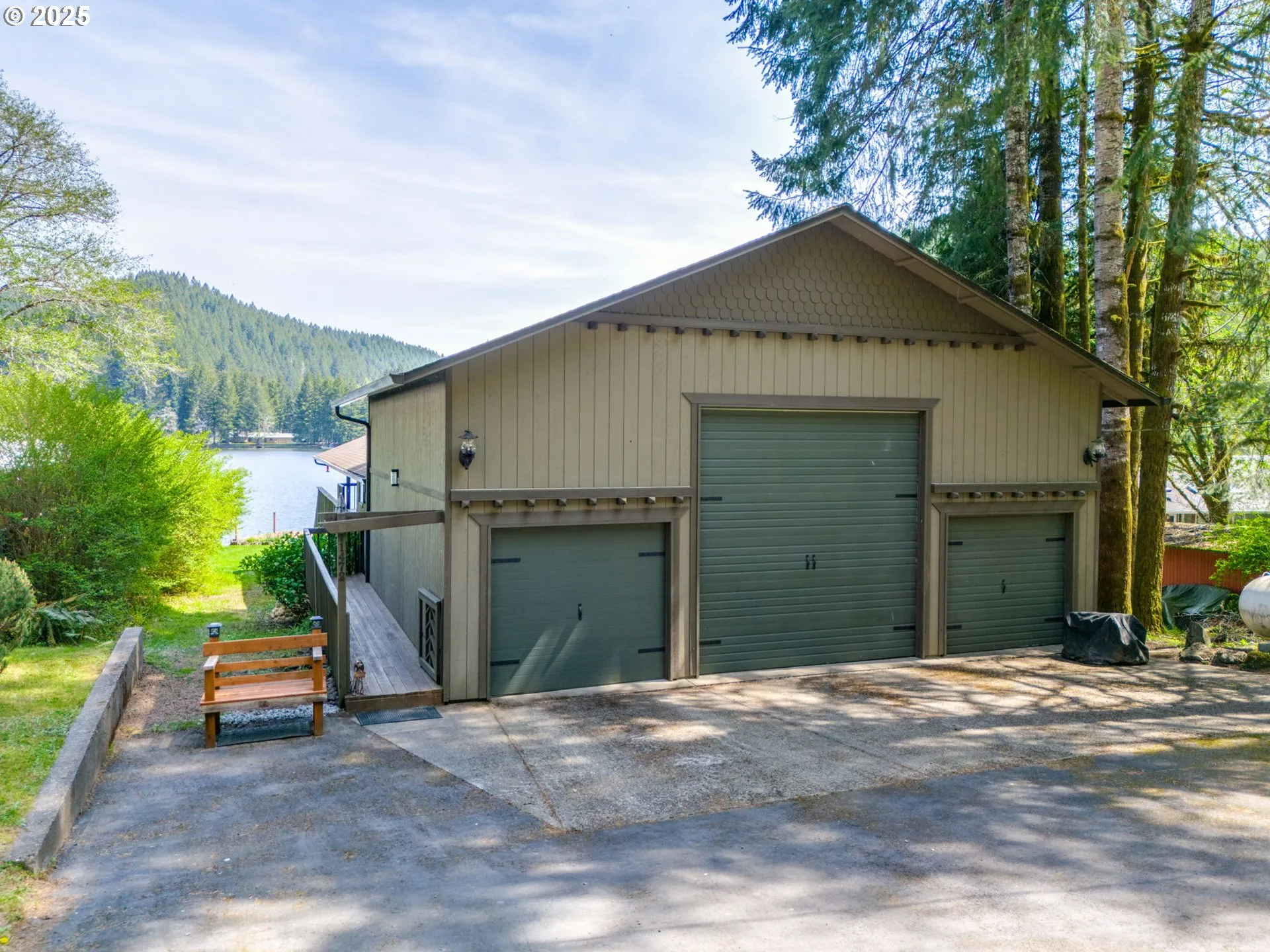 PRICE REDUCED and Sellers are motivated to make a deal! Enjoy Summer on Fishhawk Lake! This custom lakefront home is 3,652 welcoming square feet and is set on 1/3 acre with a private dock and gorgeous wide-open lake and mountain views. The home is well maintained with a 50 year roof, new 6″ gutters, and nature inspired exterior lighting. Two gas fireplaces feature bespoke stone surrounds and a new pellet stove was recently added in the lower level. All new interior lighting, ceiling fans, and paint were chosen with care. As an additional bonus, the special assessments on this property are paid in full! The open concept kitchen, dining area, and living room are positioned to soak in those stunning water and forest views. Double glass doors lead to your expansive covered deck and a bird’s eye view of your peaceful surroundings-the perfect spot for sunrises, morning coffee, and watching eagles soar over the lake. From there, head down to your own dock to launch a kayak or soak in some sun while fishing (during season). Just wait ’til you see the private flat driveway leading to your 3-bay garage/shop and storage loft, plenty of room for all your lake toys and tools!The main-level primary suite offers a spacious walk-in closet and a full en-suite bath. Two additional bedrooms are also on the main level as well as another large, full bathroom. The fourth bedroom is on the lower walk-out level, along with the third full bathroom. The lower-level entertainment area showcases a stylish dry bar and a full-size refrigerator. There’s even a dedicated workout zone to help keep your lake life balanced!Walk directly out of the lower level to the patio and backyard. The stamped concrete patio is hot-tub ready and animal lovers will appreciate the convenient pet door that leads to a fenced kennel area.