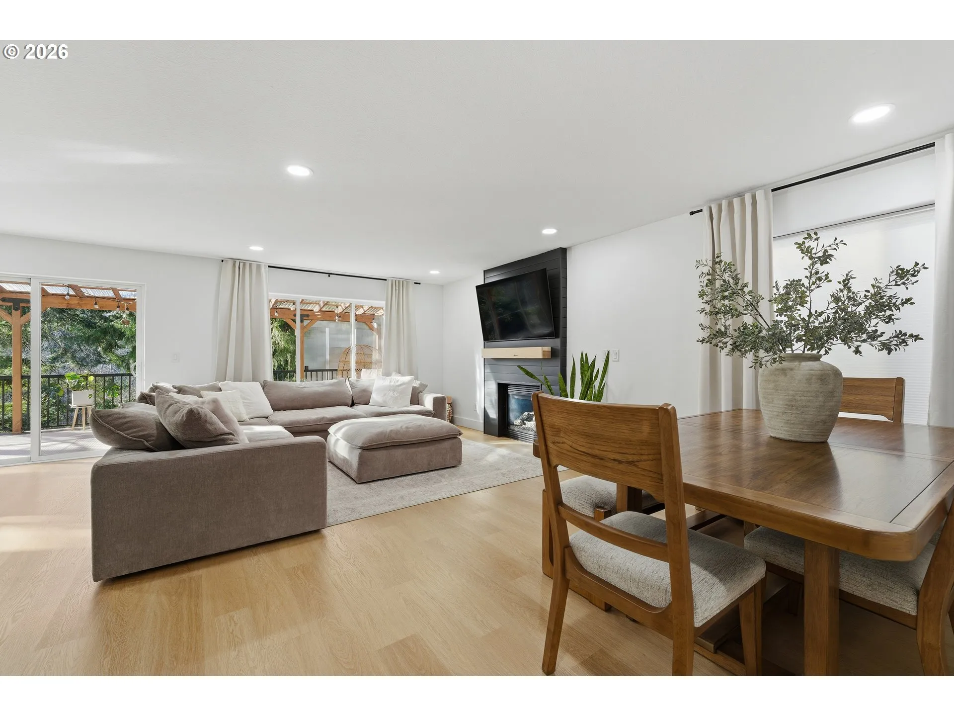 A rare opportunity to own a beautifully remodeled home backing to forest land, with the added advantage of an assumable 4.55% FHA loan for qualified buyers.This home has been fully remodeled inside and out, including fresh modern exterior paint. Inside, you’ll find new LVP flooring, a designer LVP staircase with dark railings, and upgraded chandeliers and modern lighting throughout. The remodeled kitchen features a quartz island, and all bathrooms have been beautifully remodeled. The spacious primary suite offers vaulted ceilings and a luxurious primary bath with heated tile floors.Large windows provide abundant natural light throughout the home. Step outside to a covered patio overlooking peaceful forest land, creating a private Northwest retreat.Fully remodeled, move-in ready, and hard to find at this level of finish and setting.