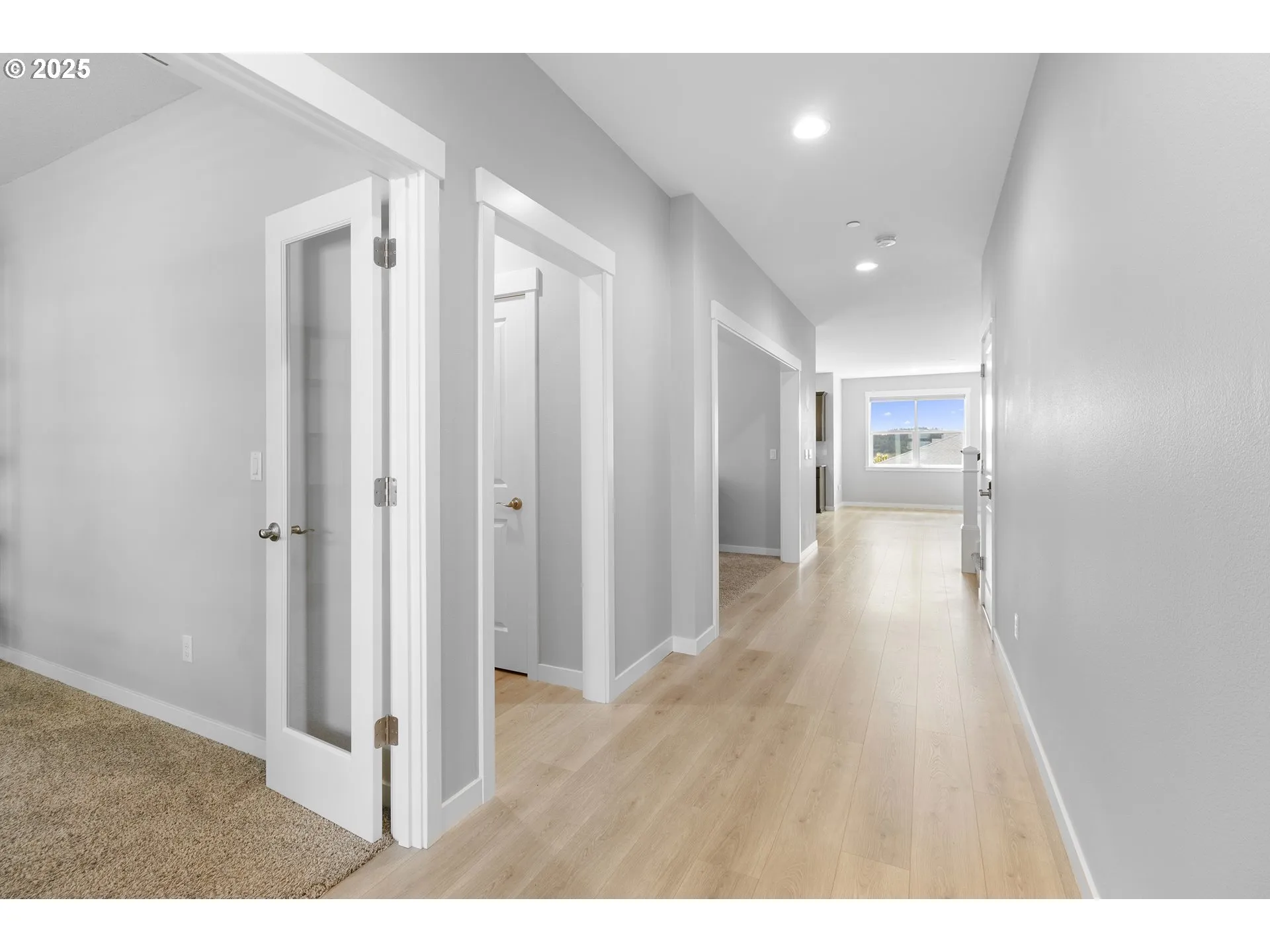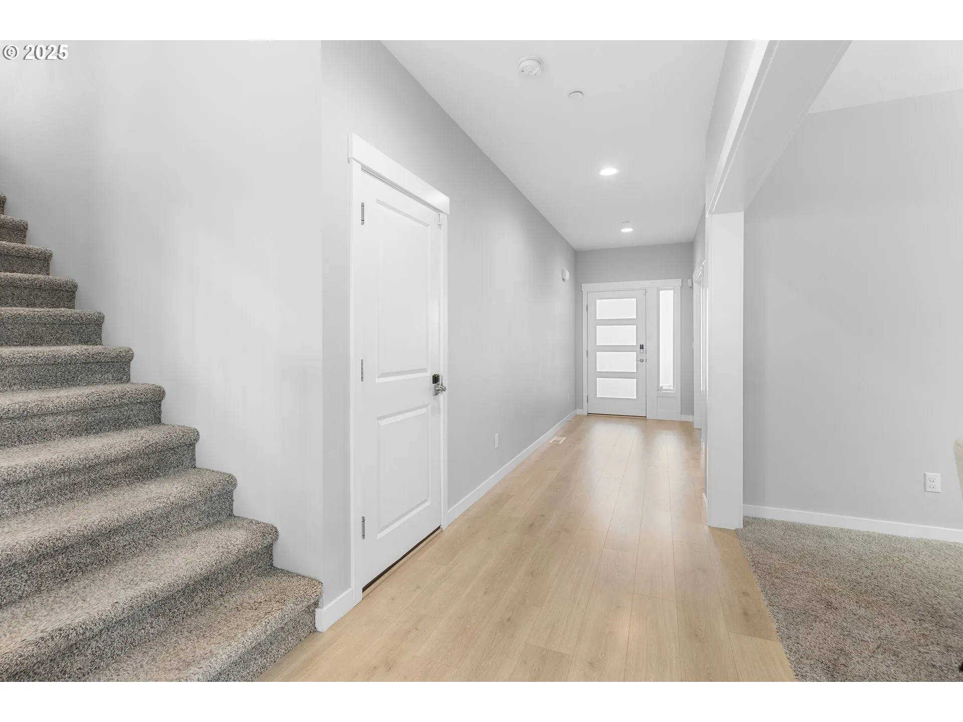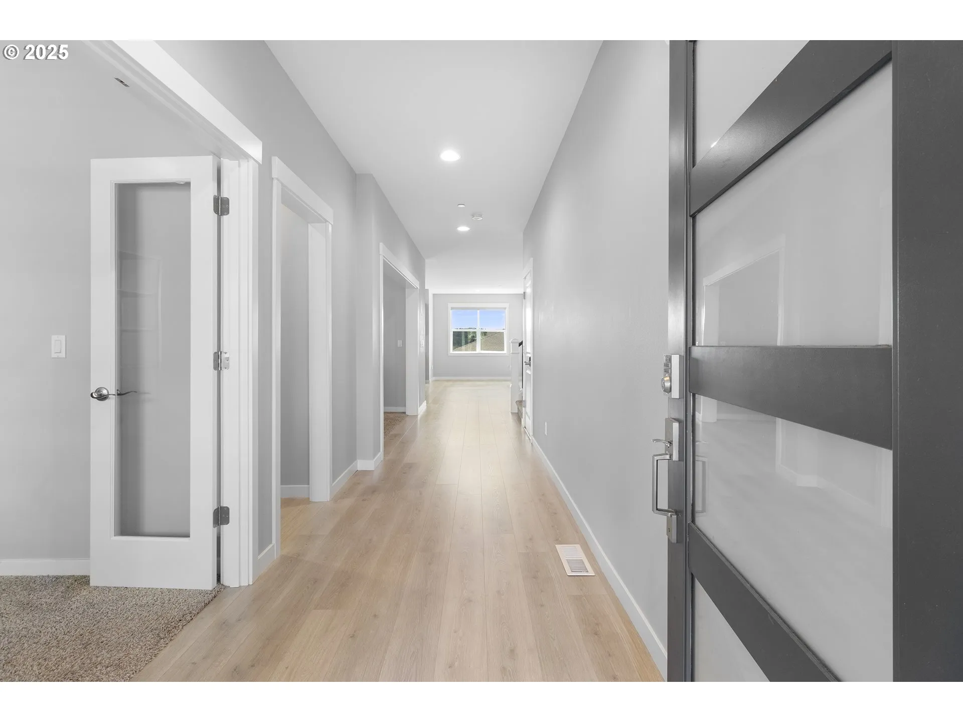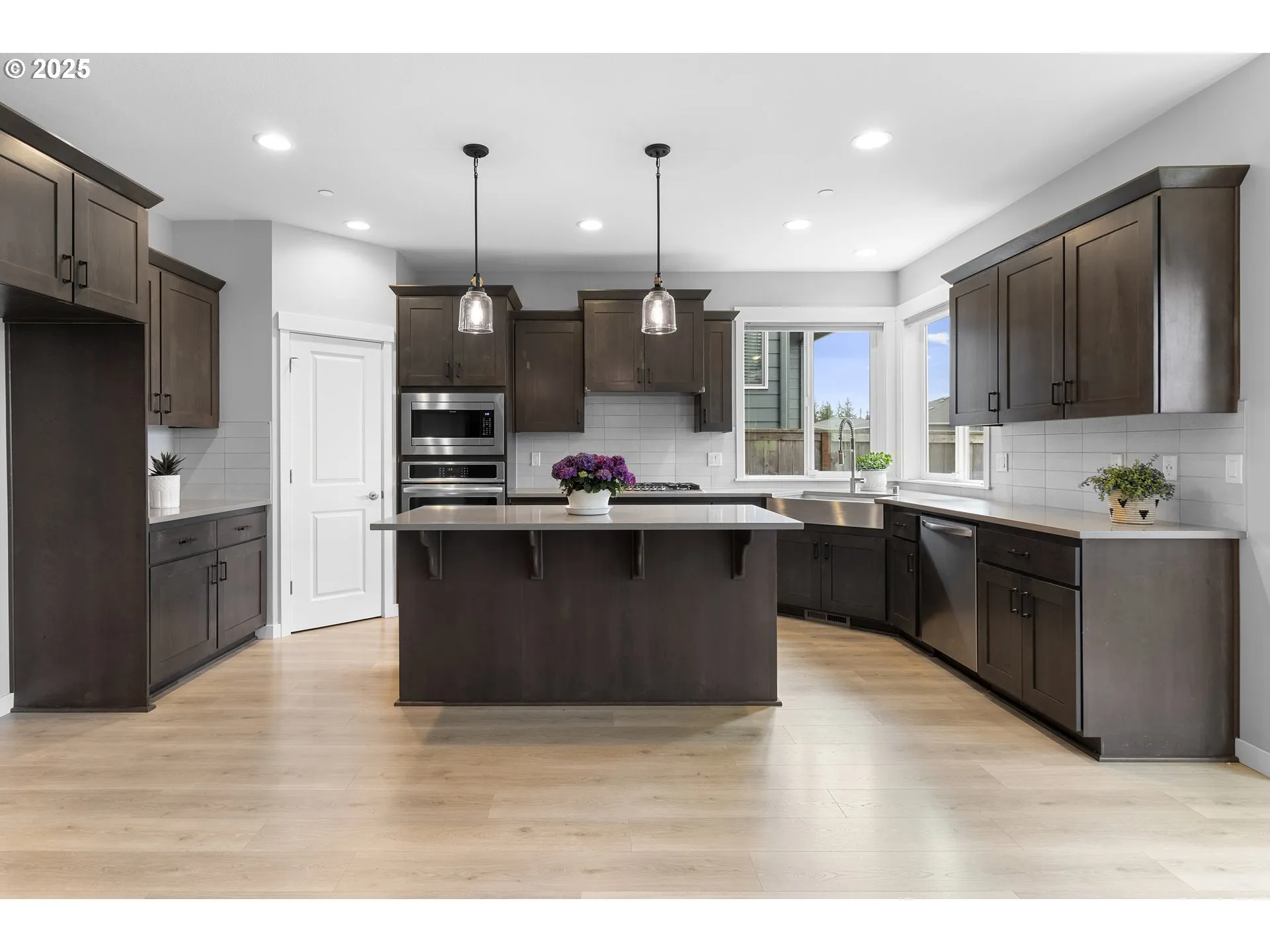 Tucked in a quiet neighborhood, this beautiful 2018 home is surrounded by scenic nature trails, parks, swimming holes, and more. It sits on a flat, usable lot featuring a newly installed backyard lawn, a covered patio, and elegant stone pavers extending along the side and rear yard. Step into a spacious entryway 9-foot ceilings that lead into an open-concept living area. The kitchen boasts stainless steel appliances, sleek quartz countertops, custom pull-out shelves, an island, and pantry—perfectly positioned across from the family room, making it ideal for everyday living and entertaining. The main level also offers a dedicated home office and a formal dining room. The three-car garage features a deeper bay for added storage or hobby space, an exterior garage door keypad, a sleek Penntek coated concrete floor, and SafeRacks overhead storage—creating a clean and organized space. Upstairs, the luxurious primary suite includes two Container Store Elfa custom walk-in closets, a spa-inspired bathroom with a stand-alone soaking tub, a generous walk-in shower, and a private toilet room. Three additional bedrooms, an upgraded guest bathroom with Kohler LuxStone walk-in shower, and a spacious laundry room with sink and built-in cabinets complete the upper level’s thoughtful design. The home also features custom wood shutters and blinds and modern light fixtures throughout. A scenic view of beautiful surrounding trees can be seen from an upstairs bedroom. Excellent Camas school district! Woodburn Elementary is within walking distance and just minutes from Camas High School. Plus, you’re close to the vibrant shops and dining of downtown Camas, as well as the natural beauty of Round Lake and Lacamas Lake.