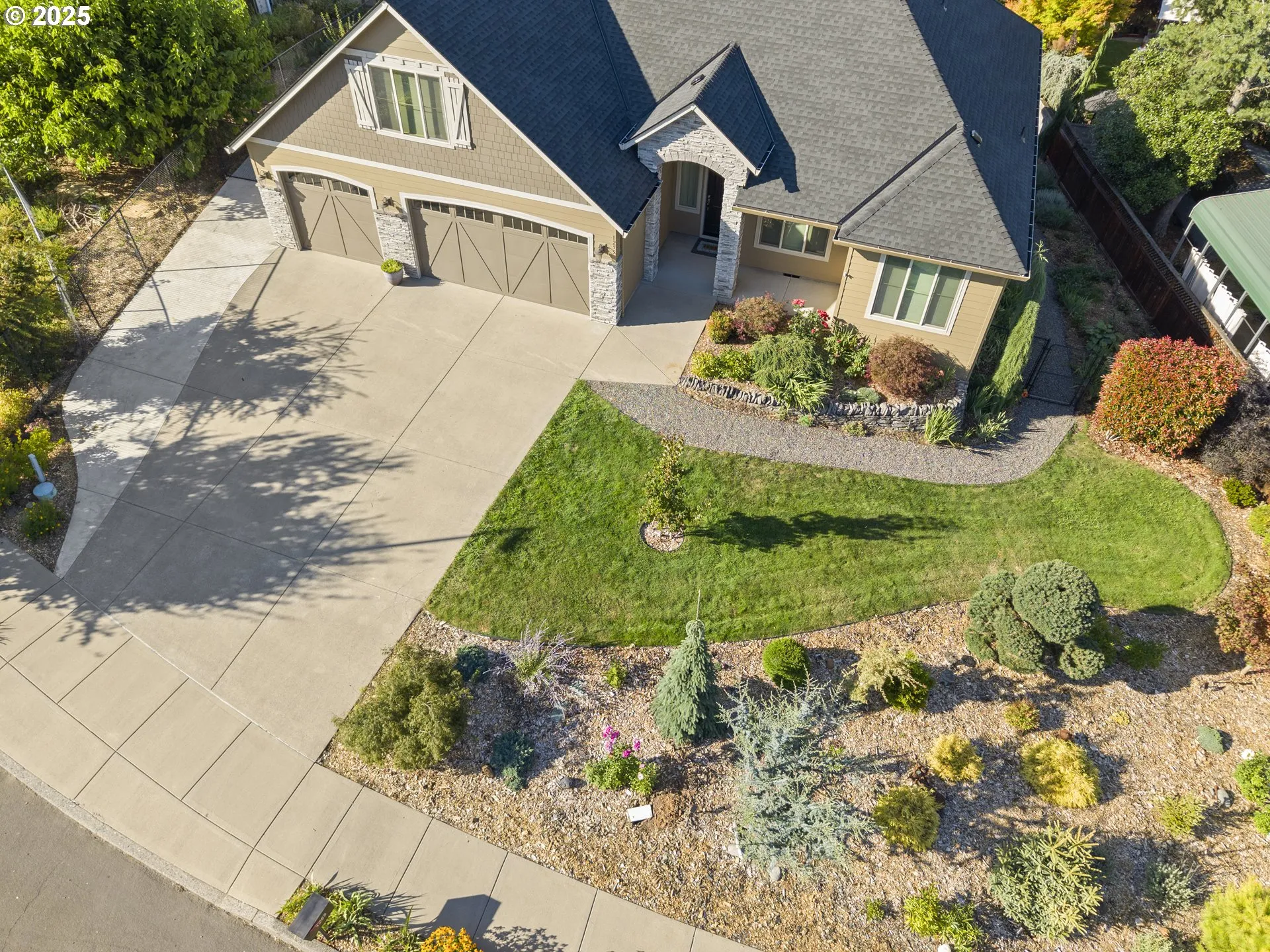 Welcome to Caribou Acres in Camas—where space, views, and easy living come together. This 2014 craftsman sits on a rare ½-acre with sweeping territorial and mountain vistas. Inside, the light-filled great room, high ceilings, and engineered hardwoods create a comfortable, open feel. The kitchen is ready for everyday cooking and entertaining with a gas cooktop, granite counters, an island, pantry, and stainless appliances. The main-level primary suite features vaulted ceilings, a walk-in closet, and a spa-style bath with a soaking tub and walk-in shower. Two additional bedrooms are set apart for privacy, and the upstairs bonus room is perfect for a media space, playroom, or home office. Step outside to an expansive, fenced yard with established landscaping—including pear, plum, fig, and apple trees, plus raspberries and blueberries—along with raised beds and a large composite deck for summer dinners. A private sauna and jacuzzi to help you relax and unwind after a long day. Practical perks: a 3-car garage, tankless hot water, central A/C, double-pane windows, and accessible main-level living (garage on main, main-floor bed/bath, walk-in shower), new roof in 2025 with transferable warranty. All in the highly rated Camas School District near Dorothy Fox Elementary, parks, trails, and everyday conveniences. Move-in ready, with room to breathe and room to grow.