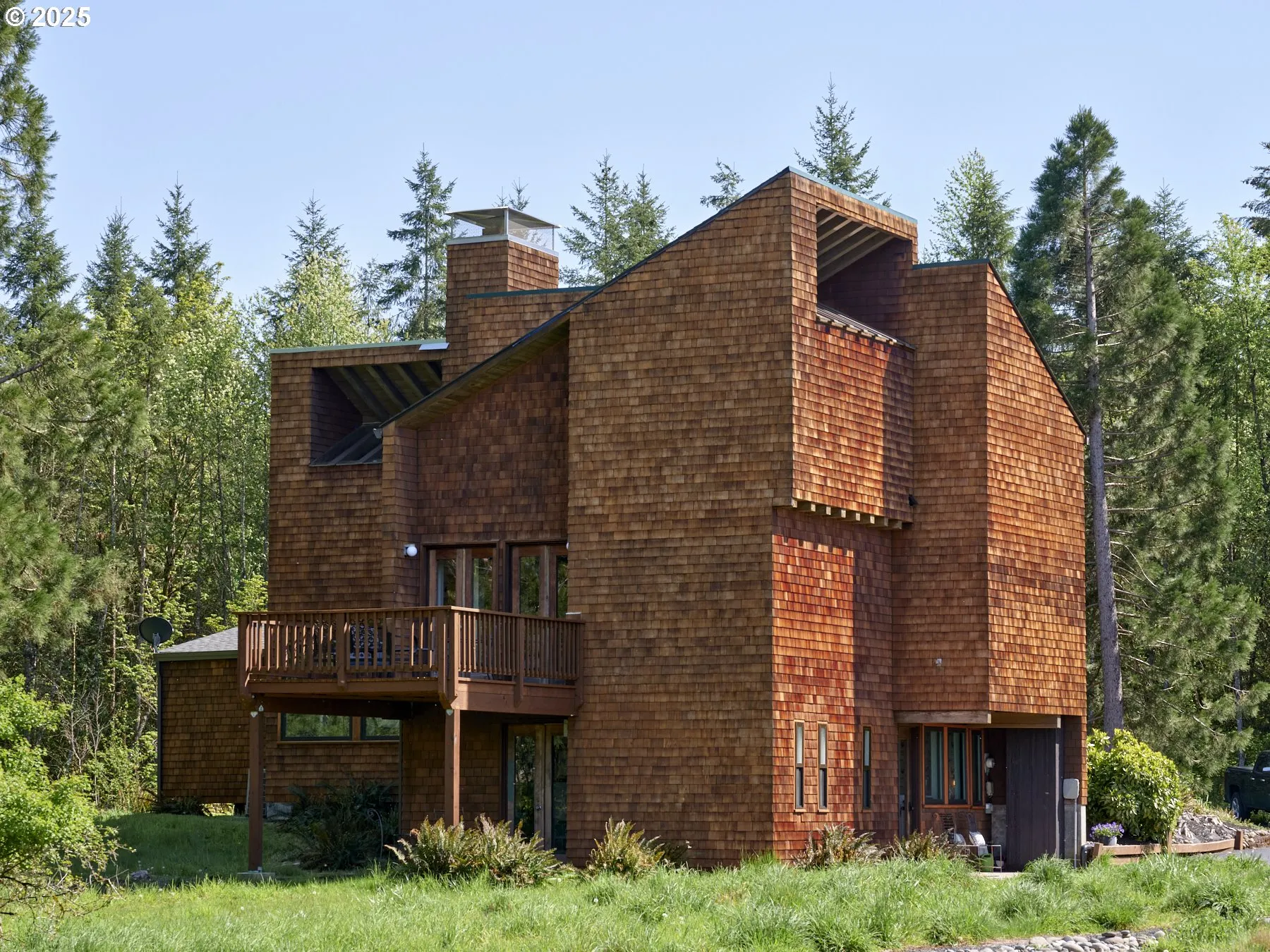 Set against a dreamscape of woods & meadow, this architectural masterpiece showcases art & function on a rural landscape. Exceptional design; every room is unique & purposeful! Spacious kitchen featuring abundance of counter space, modern oak cabs, 2 pantries, expansive island & workspace counter & newer SS appliances, that opens to living/dining room. Spacious suite-like bedrooms on each level. 3rd Bed is dual purpose as a studio. Exposed beams, vaulted ceilings, tongue & groove paneling, fireplaces in sitting rms add to the spellbound effect. Mechanical components updated w/new roof, furnace & heat pump, windows, deck & porch + more. Located off a separate driveway from the house is a 30′ x 50′ oversized 3 car detached garage + 30′ x 40′ & 27′ x 60′ shop (approx 3000 SF of shop space) w/220 power & Wifi: perfect set up for a home business. The timber stand offers a stunning view and is merchantable. Picturesquely located on a quiet county road. Excellent 5G high speed fiber internet. Make sure to check out the video & virtual tours. Rarely does a property so exquisite come on the market, here is your opportunity to own a property that makes a statement at an incredible price!