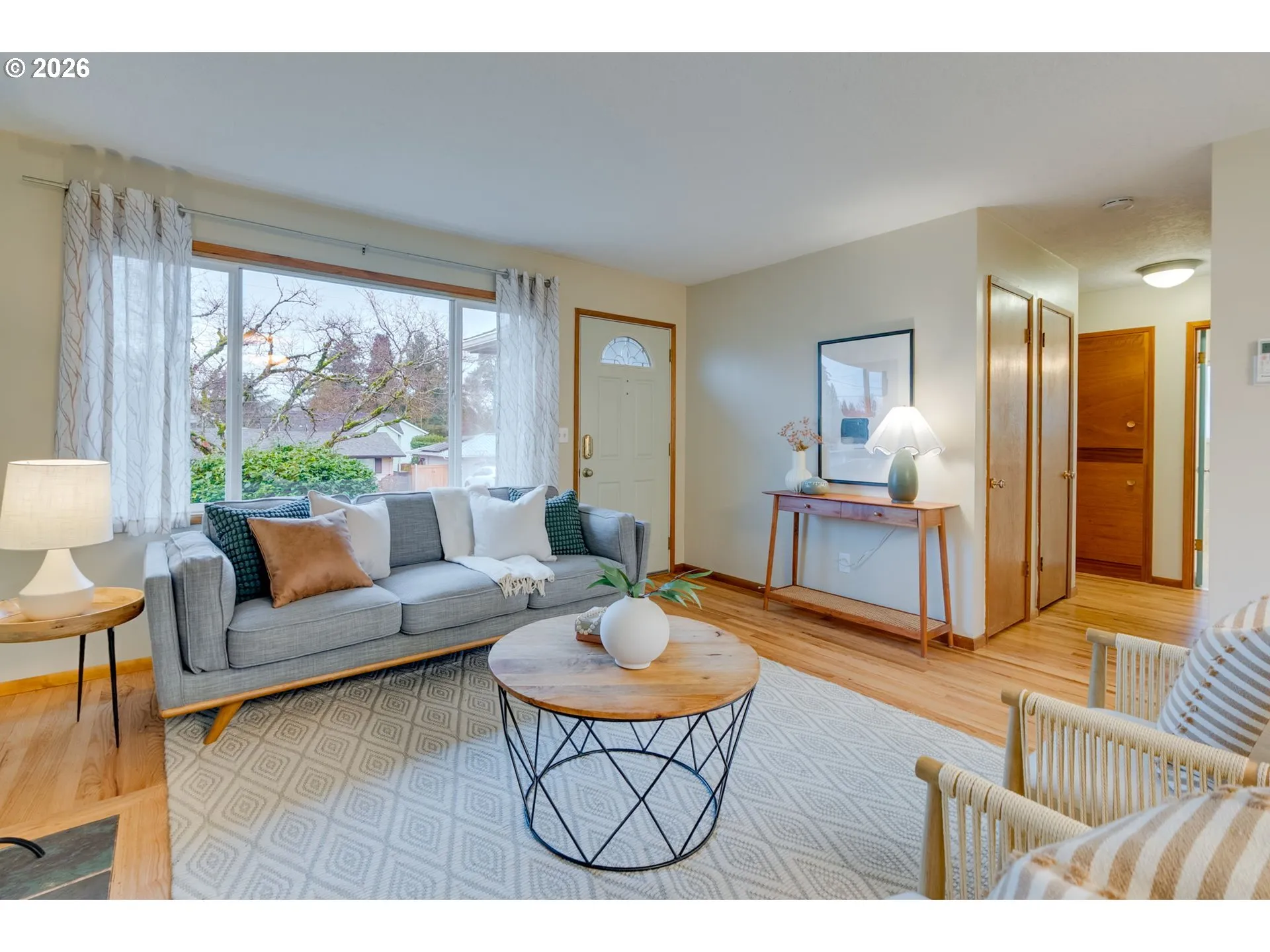 This darling one-level midcentury ranch in Gladstone is easy to love and even easier to live in. Set on a peaceful, tree-lined street, the three-bedroom, one and a half bath layout offers just the right amount of room to live comfortably. A wood-burning fireplace grounds the living room, opening to the dining area and kitchen for a layout that feels intuitive, cozy and practical. Large windows drench the main living space with natural light and three bedrooms are tucked away, including a full bathroom with double sinks and plenty of counter space. The layout makes the most of every square foot, ideal for a first home or anyone craving simplicity without sacrifice. Right off the dining area is a tidy and extra long one-car garage that offers more than just parking; it’s a great candidate for an art studio, workshop or seasonal bonus space, including a pull-down attic staircase with abundant storage overhead. Out back, the fully fenced yard is ready for summer evenings on the patio, gardening and letting pets roam. There’s also a parking pad with a carport, perfectly suited for a small adventure vehicle, a second patio or extra parking. Thoughtful systems updates include a newer roof, fresh exterior paint, updated electrical panel, PEX plumbing throughout and a mini-split for efficiency and ease. With quick access to I-205 and Hwy 99E, plus nearby riverfront trails, parks and green spaces, this home offers peaceful living with easy connection to Oregon City, Milwaukie and Portland proper.