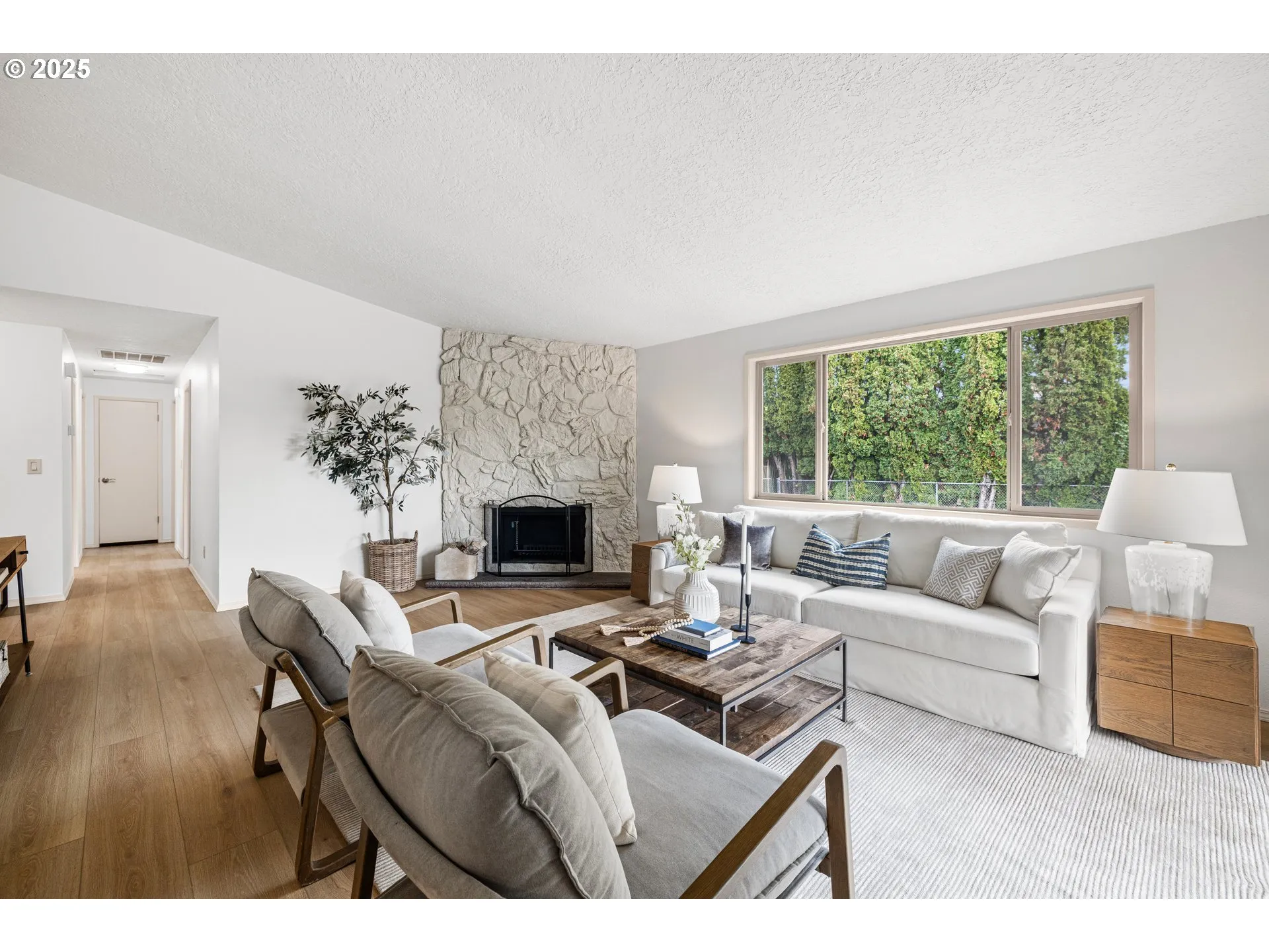 Discover this beautifully updated one-level home in the heart of Troutdale. This is move-in ready and priced to sell! Step inside to new Luxury Vinyl Plank flooring, new carpet in all three bedrooms, new interior paint, and updated lighting fixtures and switches. Major improvements include a new electrical panel and water heater. The inviting living room features a vaulted ceiling, fireplace, and a walk-out slider to the covered patio. The kitchen is equipped with a free-standing refrigerator, range, built-in dishwasher & microwave. A pantry cabinet with slide-out drawers is also included. Enjoy meals in the cheerful breakfast nook just off the kitchen. A versatile bonus family room with its own slider can serve as a second living area or a formal dining room. Both the primary suite and hall bathroom feature convenient walk-in showers. Stay comfortable year-round with gas forced-air heating, central air conditioning and double pane windows. Attached two car garage and on site laundry. Located on a large level lot with a bonus 10′ by 16′ storage shed. This home is an incredible value. Make an appointment or come by the open house on Sunday, from 11 am to 2 pm.