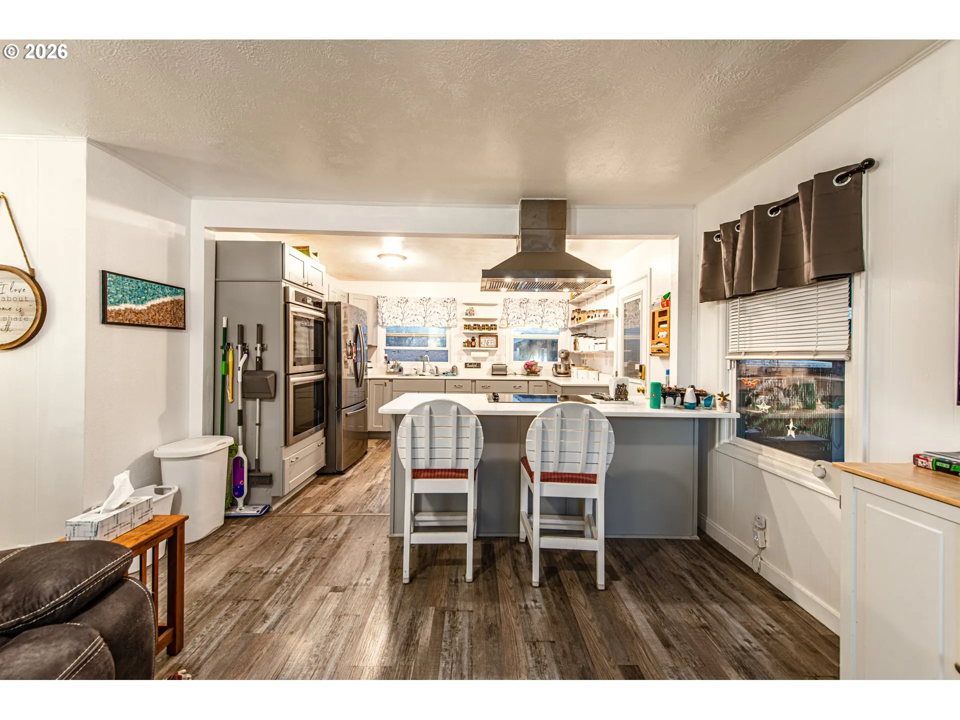 Updated bungalow in a desirable Cottage Grove neighborhood! This 872sq ft, 2-bedroom, 1-bath home features high ceilings, new vinyl windows, and luxury vinyl flooring throughout. The remodeled kitchen offers shaker cabinets, quartz countertops, long eat bar and stainless appliances, including a glass-top range, double wall oven, and refrigerator. The fully updated bath includes a new shower and extra storage. A 240 sq ft detached flex room with laundry adds versatile space. Enjoy a 3-year-old ductless heat pump with three head units, new solar system with near-zero electric bills, generator plug-in, gated covered tandem carport for two cars, gated RV parking, tool/storage shed, and garden area. Fantastic location with easy access to I-5, shopping, parks, schools, and groceries.