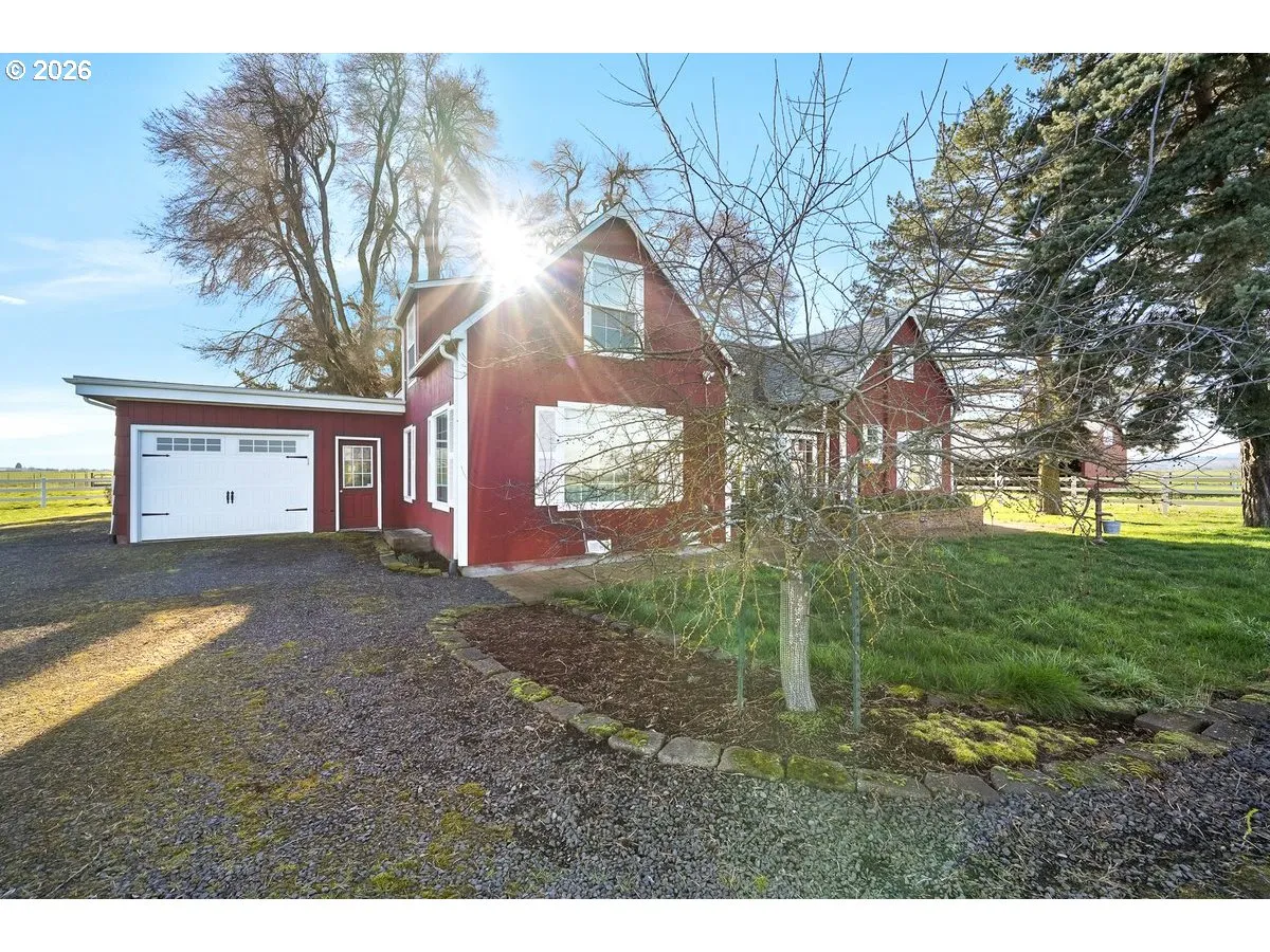 Set on approximately 80 acres in close proximity to Junction City, this fully fenced and gated farm offers a combination of income production, privacy, and versatile agricultural infrastructure. The farm ground is currently leased through the 2026 crop season, providing immediate income while preserving future flexibility for owner-operators or investors. The property features up to 28 acres of water rights and is presently planted to grass seed. Productive Coburg and Awbrig soils (per USDA Web Soil Survey) support a wide range of agricultural uses, including continued seed production, pastured livestock, and equestrian operations. The land has also historically been utilized as a small dairy. The charming farmhouse is positioned to take advantage of sweeping territorial views and has been carefully updated while preserving its classic farmhouse character. A new Quadrafire 1200 pellet stove valued at $5,000, and rated for 2700 sq ft has been installed. Outdoor living is enhanced by a large deck, landscaped backyard with established garden beds and assorted fruit trees – creating a peaceful, private setting ideal for everyday living or entertaining. Two substantial 60’ x 80’ barns provide exceptional functionality. One barn has been retrofitted for equestrian use and includes five 15’ x 13’ horse stalls, a tack room, and ample working space, making it ideal for equestrian enthusiasts. The second barn serves as a shop and equipment storage facility, well suited for farm operations or additional business uses. Covered RV parking with electrical hookups adds further convenience for guests or travel. This well-rounded farm presents an outstanding opportunity for continued agricultural income, equestrian pursuits, or a private rural lifestyle just minutes from Junction City. Combining productive ground, quality improvements, and a beautifully maintained homestead, this property offers both immediate returns and long-term potential.