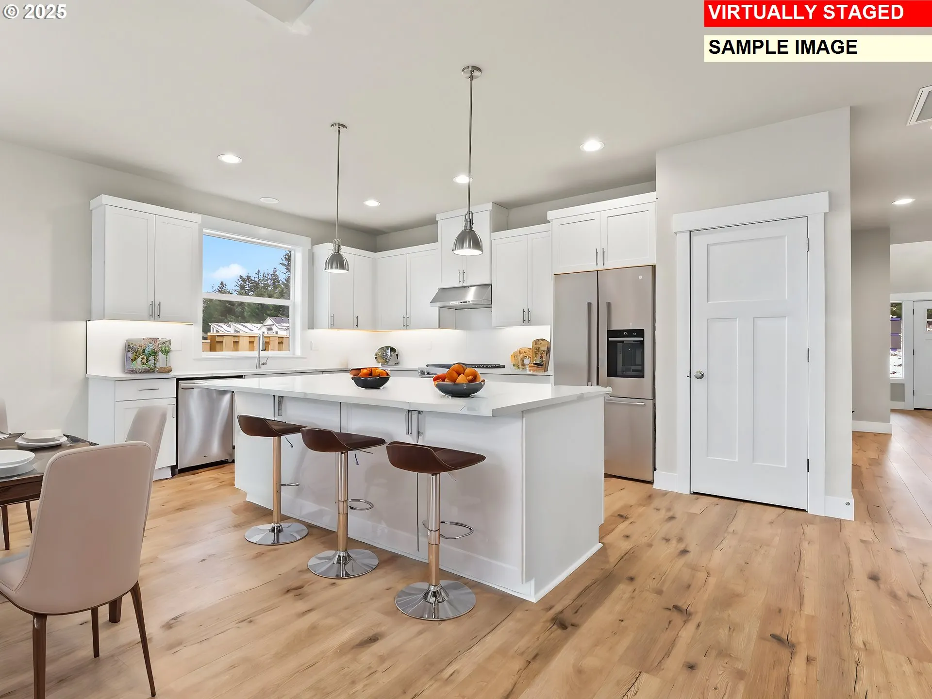 Tucked into the scenic foothills just outside Sandy,this new daylight ranch offers space, comfort, and flexibility in a peaceful, newer community. With Mt. Hood just up the highway and town amenities a short drive away, this home blends quiet living with easy access to outdoor adventure, schools, and daily necessities.The main level features a vaulted great room, an open-concept kitchen with quartz countertops, stainless appliances, and a large walk-in pantry. The spacious dining area opens to a covered back deck—ideal for year-round grilling or just soaking in the mountain air.The primary suite is a retreat of its own with double vanities, a soaking tub, walk-in tile shower, and generous walk-in closet with laundry hook-up. A second bedroom and full bath are also on the main level.Downstairs offers two more bedrooms, a full bathroom, laundry, storage, and a massive bonus room with direct access to a covered patio and backyard—perfect for guests, game nights, or multigenerational living.Additional highlights: matte black fixtures, durable laminate flooring, full tile shower surrounds, quartz throughout, and a deep garage for extra storage or gear.. Builder is offering special incentives with preferred lender.Please see your host at 41865 Deschutes Avenue when you visit Saturdays and Sundays 1 to 4.