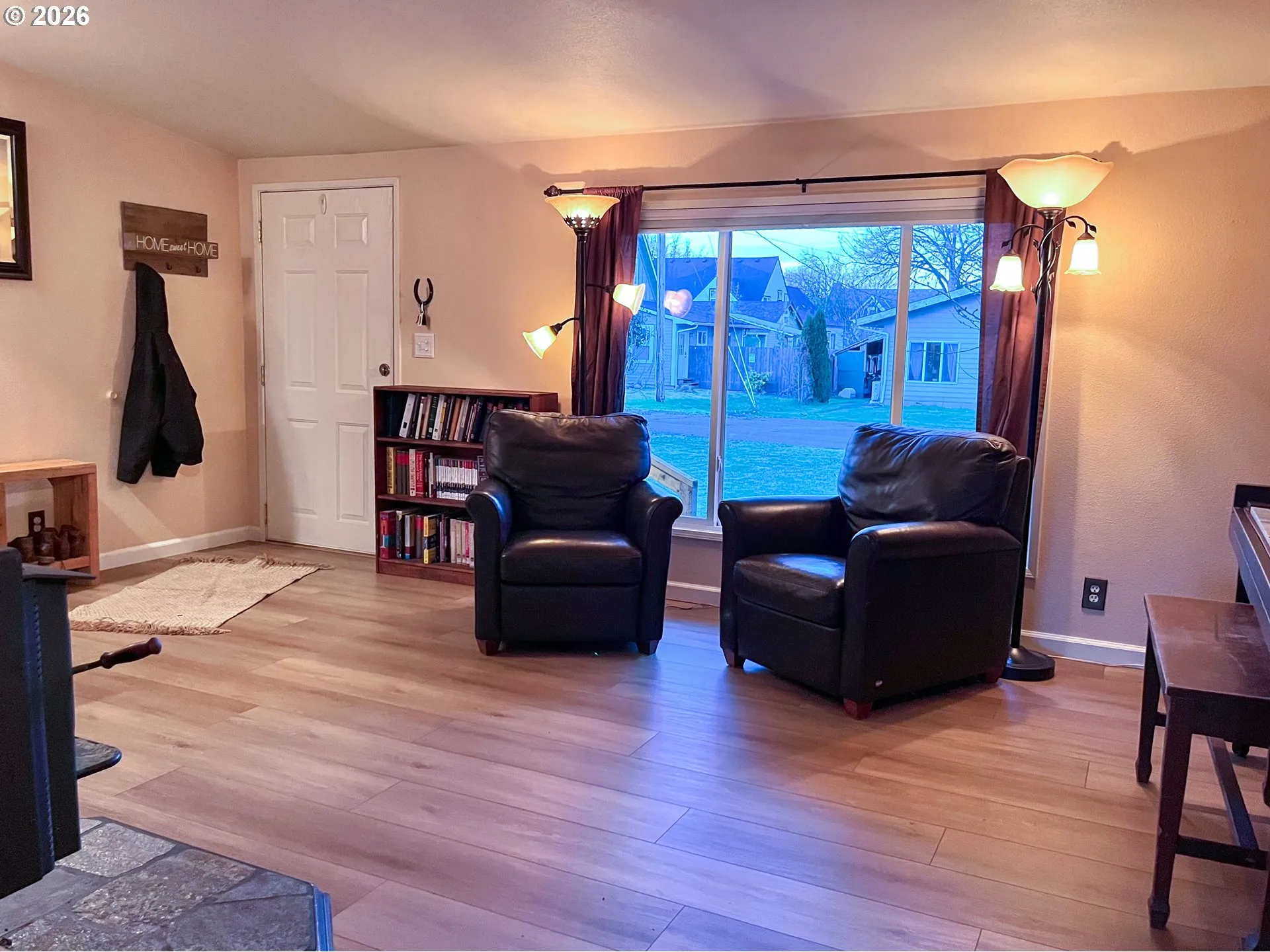 Come see this updated 4 bedroom 2 bath, 1836ft home on .31 curated acres. The property is located on a quiet dead end only steps away from a greenspace walking trail and two blocks from wineries, restaurants and a park. The home has a very open floor plan great for entertaining guests. Enjoy features such as tile showers, an infrared sauna, woodstove and pantry, The bright, large south facing windows look outside to many established fruit trees, nut trees, grape vines, herbs and blueberry bushes and much more producing hundreds of pounds of organically grown food per year. A clear covered timber framed 16x20ft patio, epic swing set, cedar decks, a large chicken coop with an automatic door, raised garden beds, 14x14ft tool shed, wood shed, fully fenced backyard and covered parking make the property a place to thrive. Ample driveway and street parking, an energy efficient ducted heat pump, a 50 year rated roof, new high end LVP flooring, and concrete fiberboard siding are here to last. No HOA. Seller is a licensed real estate broker in the state of Oregon.