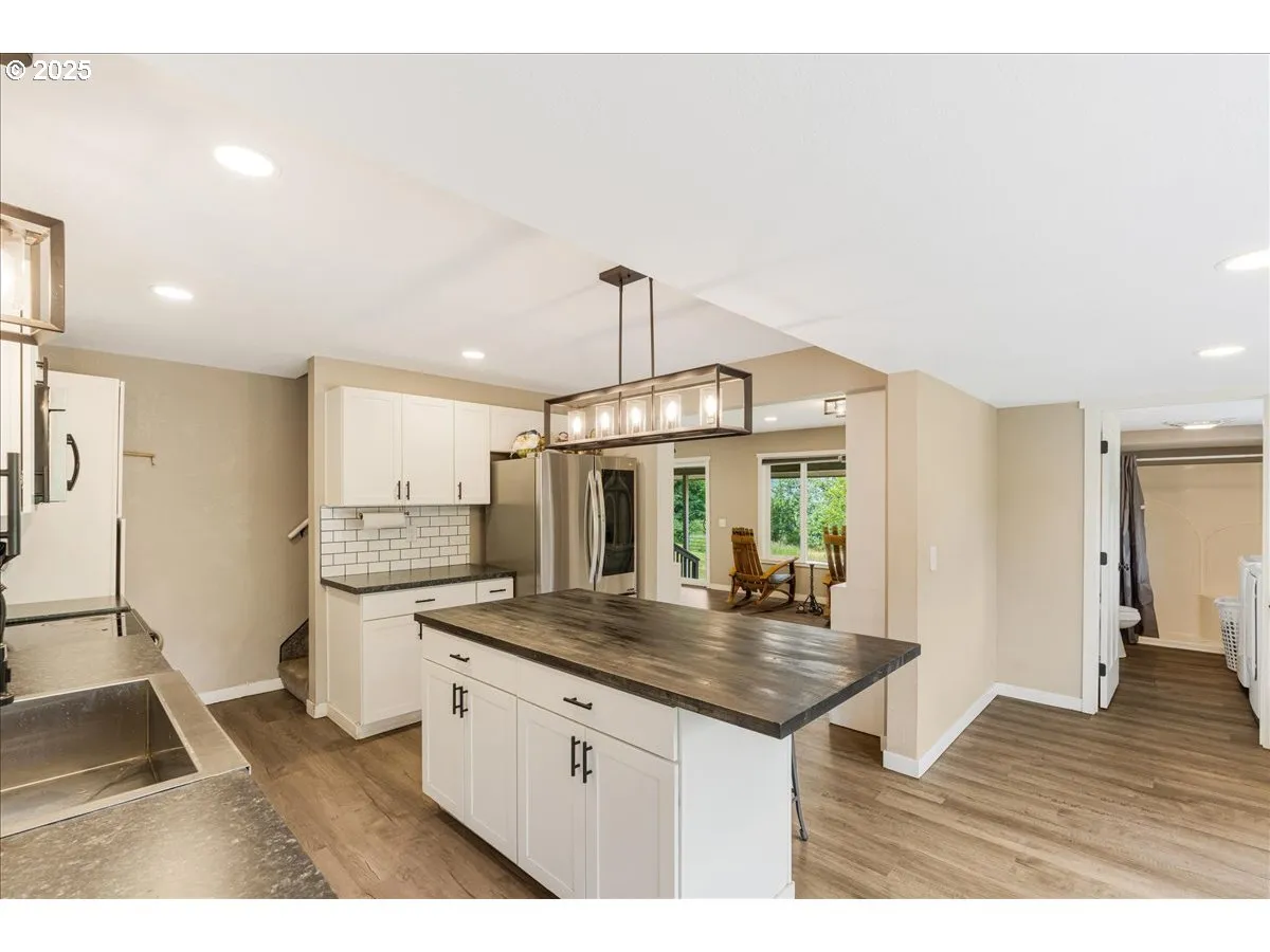 Charming 3 Bed, 3 Bath Farmhouse on 4.45 ac in desirable Kelso! Enjoy the perfect blend of modern updates & peaceful country living. Upgrades from 2021 include kitchen cabinets, counters, island, stainless steel appliances, subway tile backsplash, and flooring throughout. All bathrooms are tastefully updated (approx 2021). Primary bedroom is on main level w/ full bath. Wonderful family room/landing area located upstairs. Utility/mudroom on main adds convenience for full one-level living. Slider opens to covered patio—perfect for morning coffee, entertaining, and watching wildlife. Property has wrap-around driveway, multiple covered parking areas, a 2-car garage w/ workshop, homestead barn, stall structure, fruit trees, garden area and large pasture.