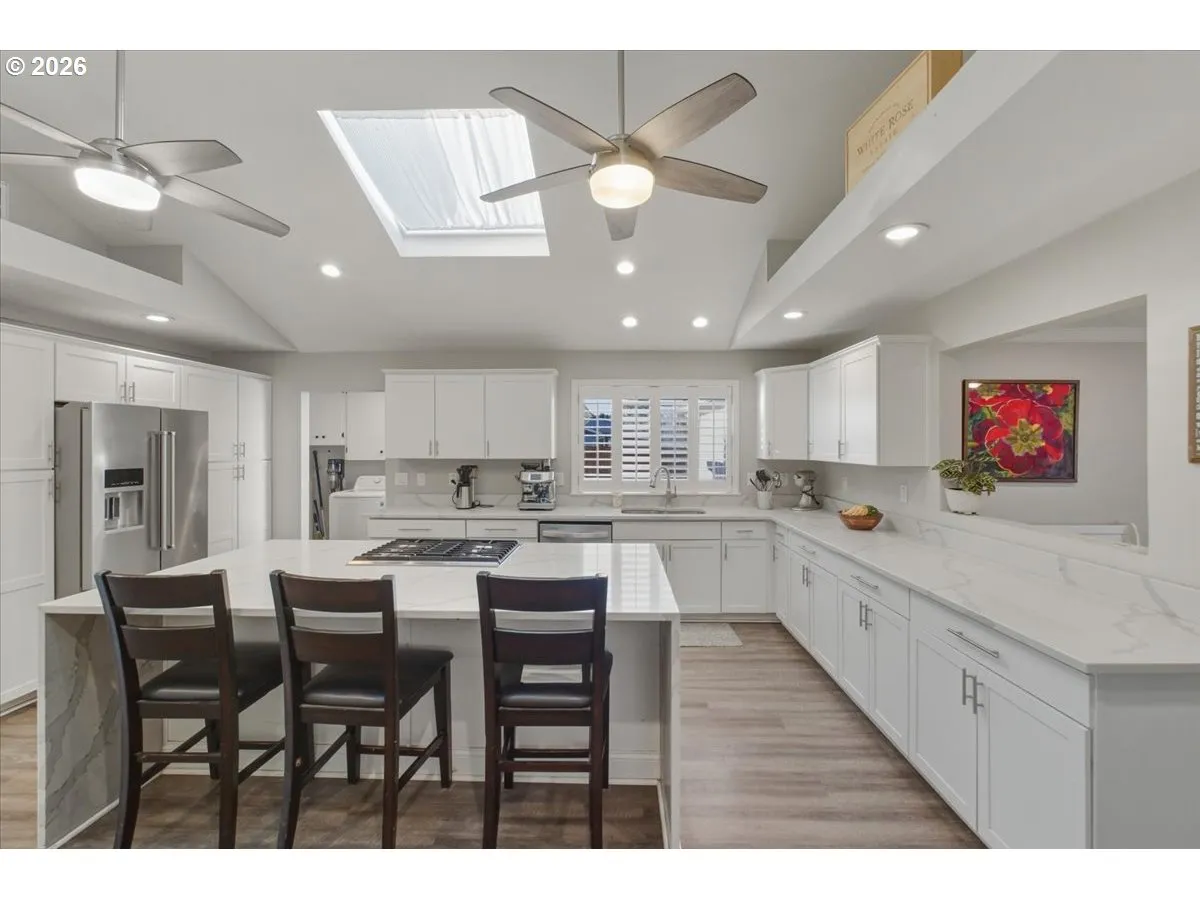 Rare Opportunity on .28 acres!Fully remodeled single-level home w/4 beds/2baths/1976sqft. + 640 sqft. ADU!Features include separate LR/FR divided by gourmet kitchen w/large island,SS appliances,quartz counters,new cabinetry,high ceilings,skylights & new HVAC.Private en-suite set apart from other rooms,w/dual vanities & deck access.Property includes a detached ADU w/additional kitchen & 2bed/2bath offering flexible living/income potential.Professionally landscaped w/gated RV Parking,3 decks & new fence.