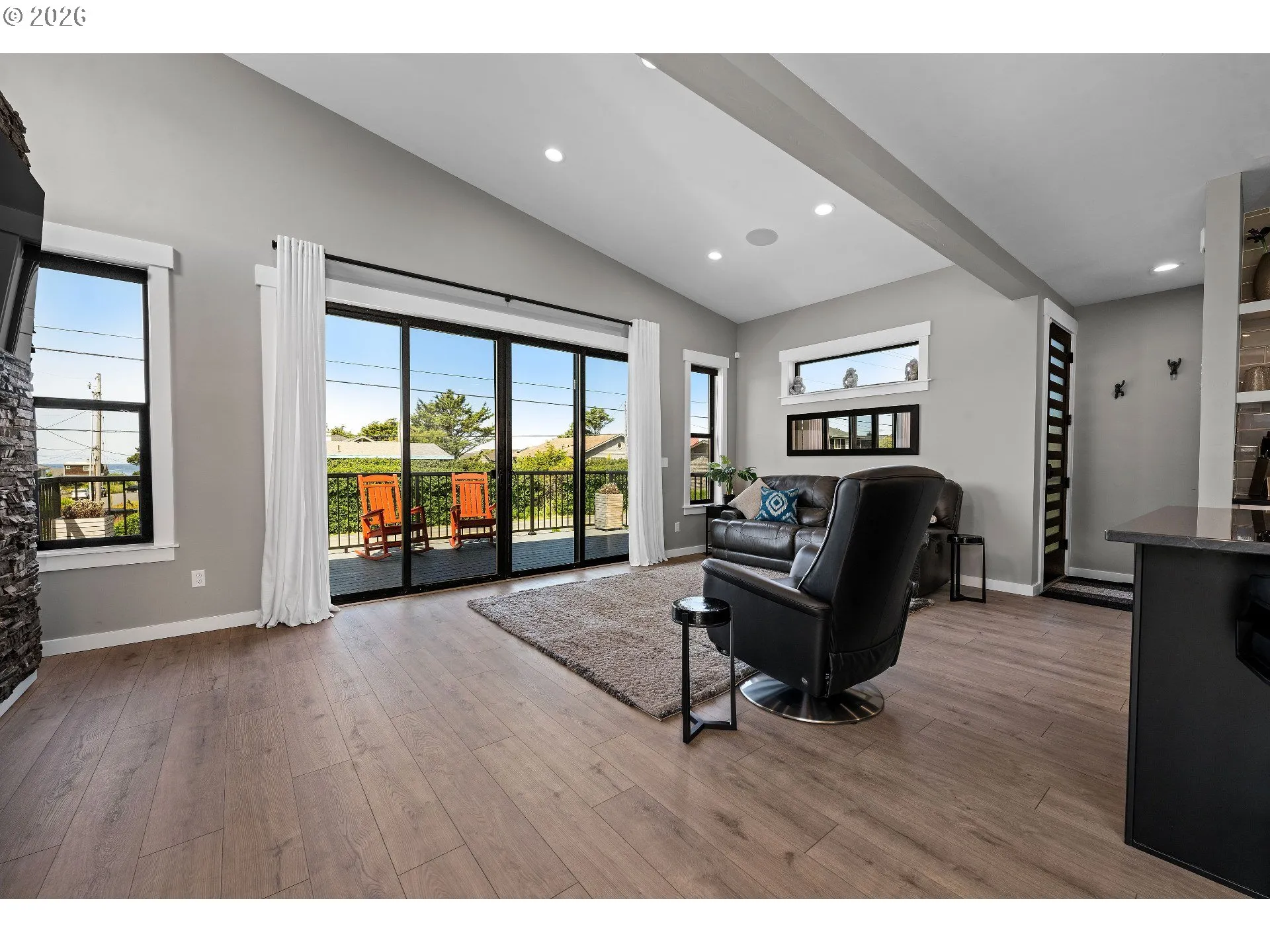 Experience modern coastal living just one block to the beach in this custom Cannon Beach home, recently built with clean architectural lines, vaulted ceilings, premium finishes, and smart home tech. With 3 bedrooms and 3 bathrooms, enjoy ocean views from both levels. The main floor offers an open-concept layout with a gas fireplace and French doors to a Trex deck. The gourmet kitchen features a quartzite island, Bosch stainless appliances with gas range, and a walk-in pantry. Upstairs includes a second living room with wet bar, dual-temp beverage fridge, and ocean-view daybed. The primary suite boasts a striking ensuite with black flagstone, rain shower, and walk-in closet. Additional highlights: zoned whole-home audio, 8’ solid wood doors, durable LVP flooring, and a two-car garage with EV charging, storage, and outdoor hot/cold plumbing for sandy days. Located in the Tolovana neighborhood, just one block from the beach. Ask for the Special Features list for more.