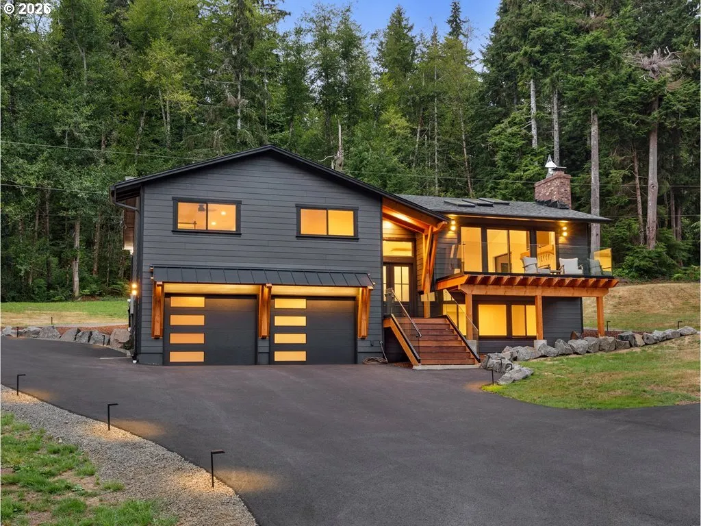To be featured on HGTV’s hit show House Hunters this spring! Step into a true masterpiece where modern luxury meets nature. This meticulously custom-rebuilt home is unlike anything else on the market—every detail brand new from the ground up and thoughtfully designed for exceptional comfort and functionality. Soaring ceilings with dramatic wood-sawn timber beams anchor the interior, leading to a gourmet kitchen with KitchenAid appliances and sleek quartz countertops. The spa-inspired primary suite impresses with a custom enclosed shower featuring six showerheads. Added conveniences include upstairs laundry, a second kitchen on the lower level, and a full-size utility room. Outdoors, enjoy a private retreat with an expansive Brazilian hardwood deck with glass railing—ideal for entertaining—plus a secluded backyard featuring Indonesian hardwood decking and a hot tub hookup. A detached 720 sq ft finished and heated shop offers endless possibilities for hobbies or storage. Additional highlights include lush landscaping, a treehouse, new cedar fencing with RV gate, and eco-friendly upgrades such as a new heat pump, furnace, and A/C, along with two EV charging stations. Backing onto state land, this home offers direct access to hiking and biking trails while remaining conveniently located.Don’t just imagine this extraordinary home—experience it. Use of preferred lenders may unlock maximum incentives.