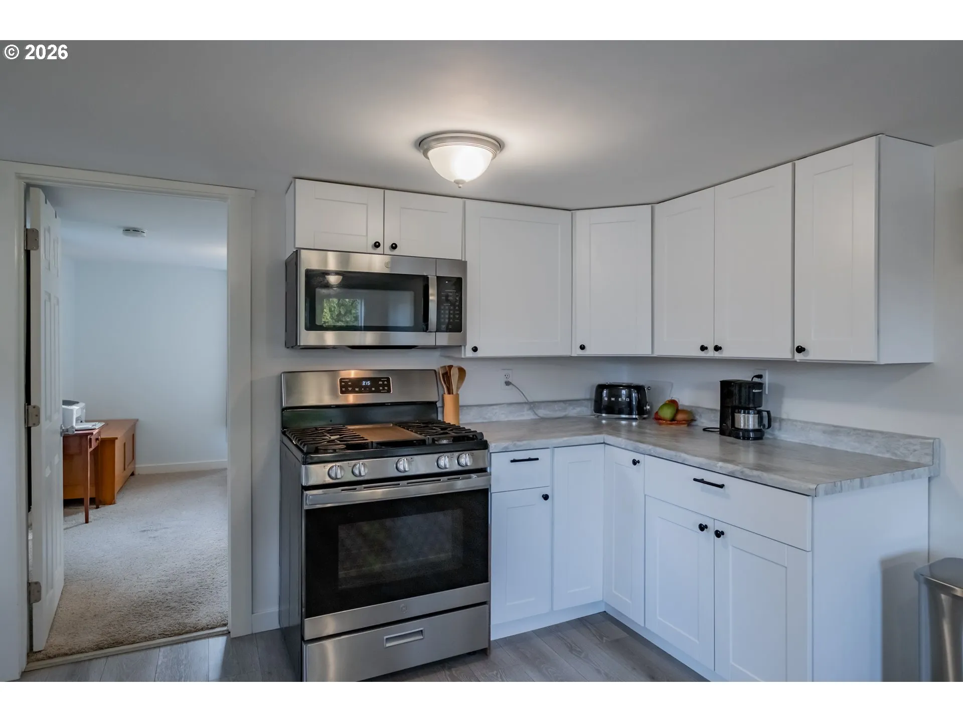 This recently updated home offers comfortable, efficient living with improvements throughout. Updates include new flooring, cabinets, countertops, kitchen and bath updates, a mini-split system, newer doors and windows, a new roof, and fresh interior and exterior paint. Set on a spacious 0.27-acre lot, the property features room for RV parking, a detached garage and lean-to for additional storage, and ample yard space with room to make it your own. The efficient layout maximizes functionality while maintaining a cozy, welcoming feel. Tucked into a convenient location near the library and park, this home is just minutes from downtown shops, restaurants, and offers easy access to I-5. Thoughtfully updated and ready for its next chapter.