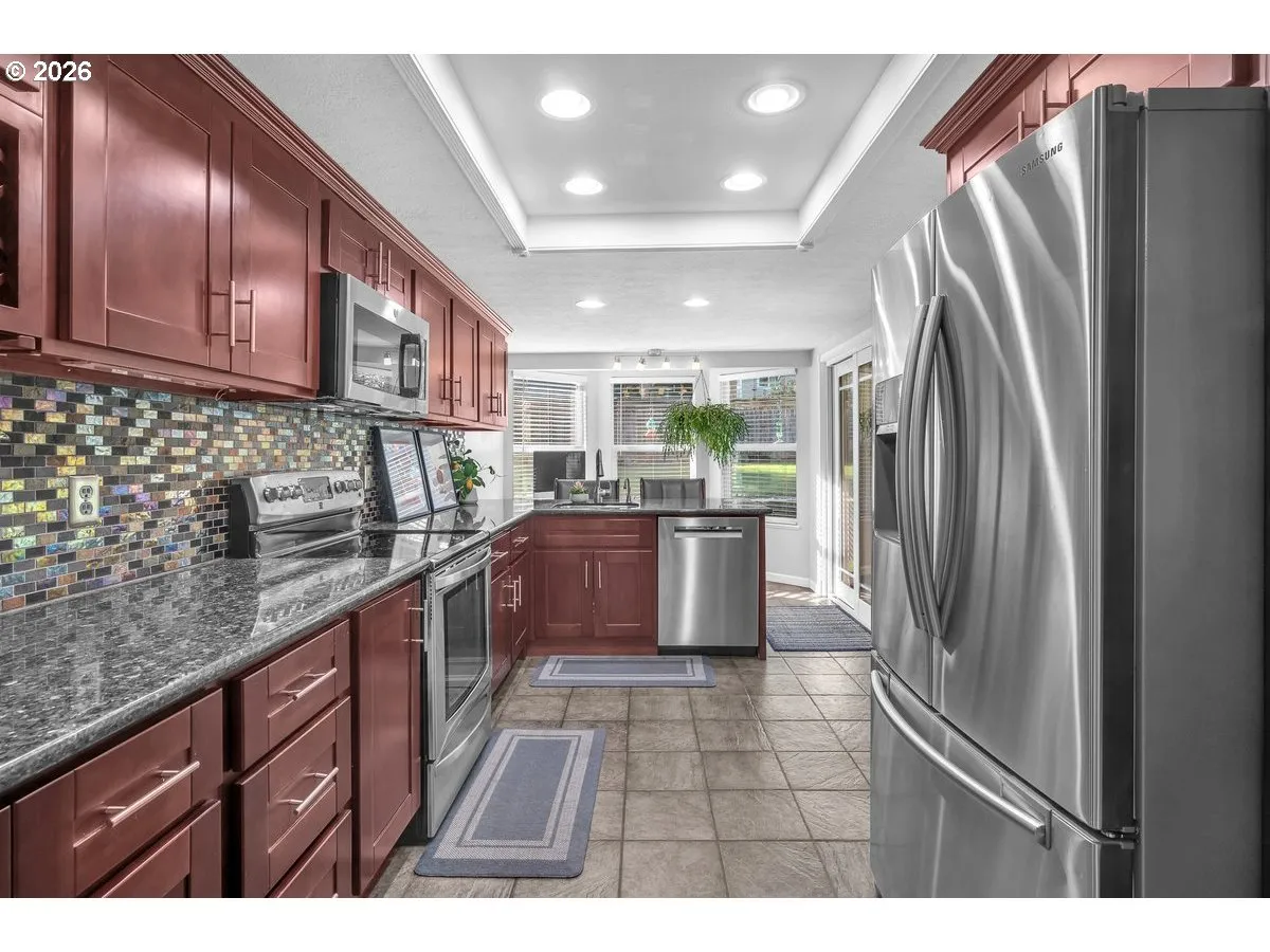 Smart, thoughtfully updated, and designed for easy one-level living, this 3-bedroom, 2-bath home is tucked into a lovely neighborhood offering the perfect balance of quiet living and conveniently located near everything you need. At the heart of the home, the oversized kitchen features stainless steel appliances, generous workspace, and abundant storage—ideal for everything from casual weeknight meals to weekend gatherings. Other features include: warm wood floors, a cozy fireplace create a welcoming atmosphere, and primary suite with a walk-in closet. The kitchen opens effortlessly to a covered patio and expansive, fully fenced yard, extending your living space outdoors for entertaining, relaxing, or play. An additional outdoor storage/work area adds flexibility for hobbies, projects, or extra gear. Enjoy easy access to nearby trails, Cooper Mountain Nature Park, highly rated schools, shopping, dining, and major employers—making it simple to enjoy the best of both nature and daily life. Open SAT/SUN 12-2.