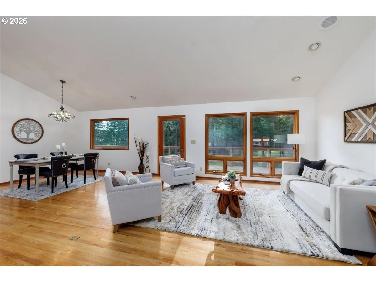 Offered for the first time, this custom-built home is set on 27 private acres of rolling pastures and wooded forest, offering exceptional privacy, versatility, and long-term potential.The main home features 3 bedrooms and 2.5 bathrooms, including a primary suite on the main level with en suite bath. Large windows capture peaceful views of surrounding pastures and forest, filling the home with natural light. Hardwood floors flow throughout the main level, while an expansive deck overlooks open pasture and mature timber—perfect for entertaining or relaxing in a serene, natural setting. The daylight basement expands the living space with two bedrooms and a full bathroom, an open bonus room with exterior access, and a separate mud room that could also function as a home office, offering excellent flexibility for a variety of uses.The property also includes a detached accessory structure located near the edge of the forest. This versatile space includes two rooms and one bathroom, along with dedicated storage beneath the structure. The layout is well suited for uses such as a home office, craft or hobby room, studio, or workout space, providing a private and quiet environment separate from the main home.A large shop with a concrete floor and mezzanine offers abundant workspace and storage, and a full bathroom is attached to the shop, adding convenience for projects, hobbies, or outdoor work.The land itself is a standout feature, offering 27 acres that may be dividable under Measure 49 (buyer to perform due diligence) along with harvestable timber, creating potential for future use or investment.A rare opportunity where privacy, natural beauty, and flexible spaces come together in a truly special setting.