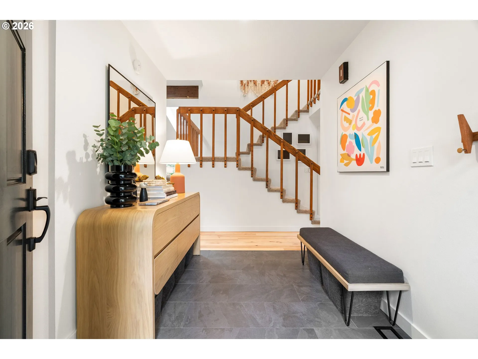 Welcome to a truly stunning example of a contemporary 1970’s home. Redesigned with care, this property belongs on the cover of a magazine. The slate entry with an open staircase and vaulted ceilings invites you in. Skylights and striking floor to ceiling windows fill the space with natural light and encourage you to stay. New touches have been carefully curated to improve the design and refresh the original vision. Period correct tongue and grove wood accent walls and solid wood trim and cabinetry can be found throughout. Fresh interior paint and new wide plank Hickory engineered floors span the first floor. The primary suite is located on the main level with vaulted ceilings and an attached bathroom and walk in closet. Through the ensuite the owner has a private exit to the rear yard that would make a great space for a jacuzzi or coffee deck. A picture window in the living room blurs the lines between indoors and out. Original wood accent walls surround a gas fireplace, frame the dining room and the loft. The open kitchen/dining room with its 2-story windows has been remodeled with a tray ceiling and new recessed lighting. Each space flows effortlessly from one to the next for both your daily life and entertaining. The open-air loft and breezeways connect the 3 upstairs bedrooms and the office. A full bath on the 2nd floor has been remodeled with new lighting, flooring and fixtures. Smartly laid out with a mudroom/laundry, there is plenty of storage within the home but also in the garage’s attic. Low maintenance the fenced backyard has a covered patio and storage shed. Set in the highly sought-after Kingsgate neighborhood, known for its mature trees, walkable trails, and convenient location, this home is a rare blend of timeless design and modern comfort.