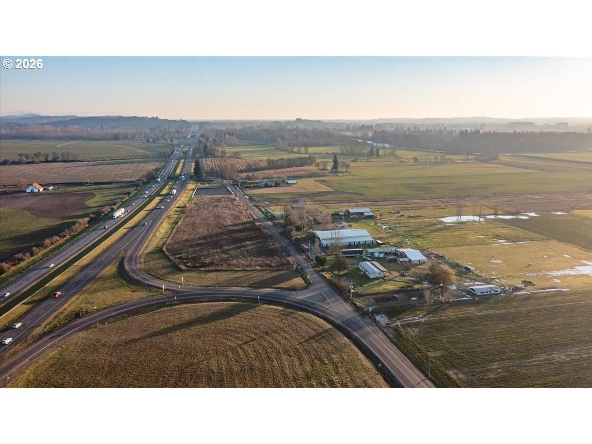 Exceptional opportunity to acquire 4.99 acres in Marion County Interchange District, located just southwest of Interstate 5, Exit 242, near Jefferson, Oregon. Highly visible and easily accessible, this extremely flat parcel provides a strong foundation for a wide range of commercial or traveler oriented uses. Zoned Interchange District, the site is well positioned for development such as a gas station, RV park, self storage facility, towing or service operation, traveler accommodations, or other complementary interchange related uses. The property is outside city limits and does not have city services, however there is ample room to support well and septic system development, with county tax assessments that are typically more favorable. A small creek winds through the southern portion of the property, adding natural character while preserving substantial usable acreage. The property appears to be outside the 100 year floodplain and outside the Sensitive Groundwater Overlay, an important consideration for future development. The combination of flat topography, freeway proximity, and flexible zoning makes this a compelling option for investors and developers seeking a high exposure location in the central Willamette Valley. Buyer to perform all due diligence regarding zoning, permitted uses, utilities, environmental factors, and development feasibility.