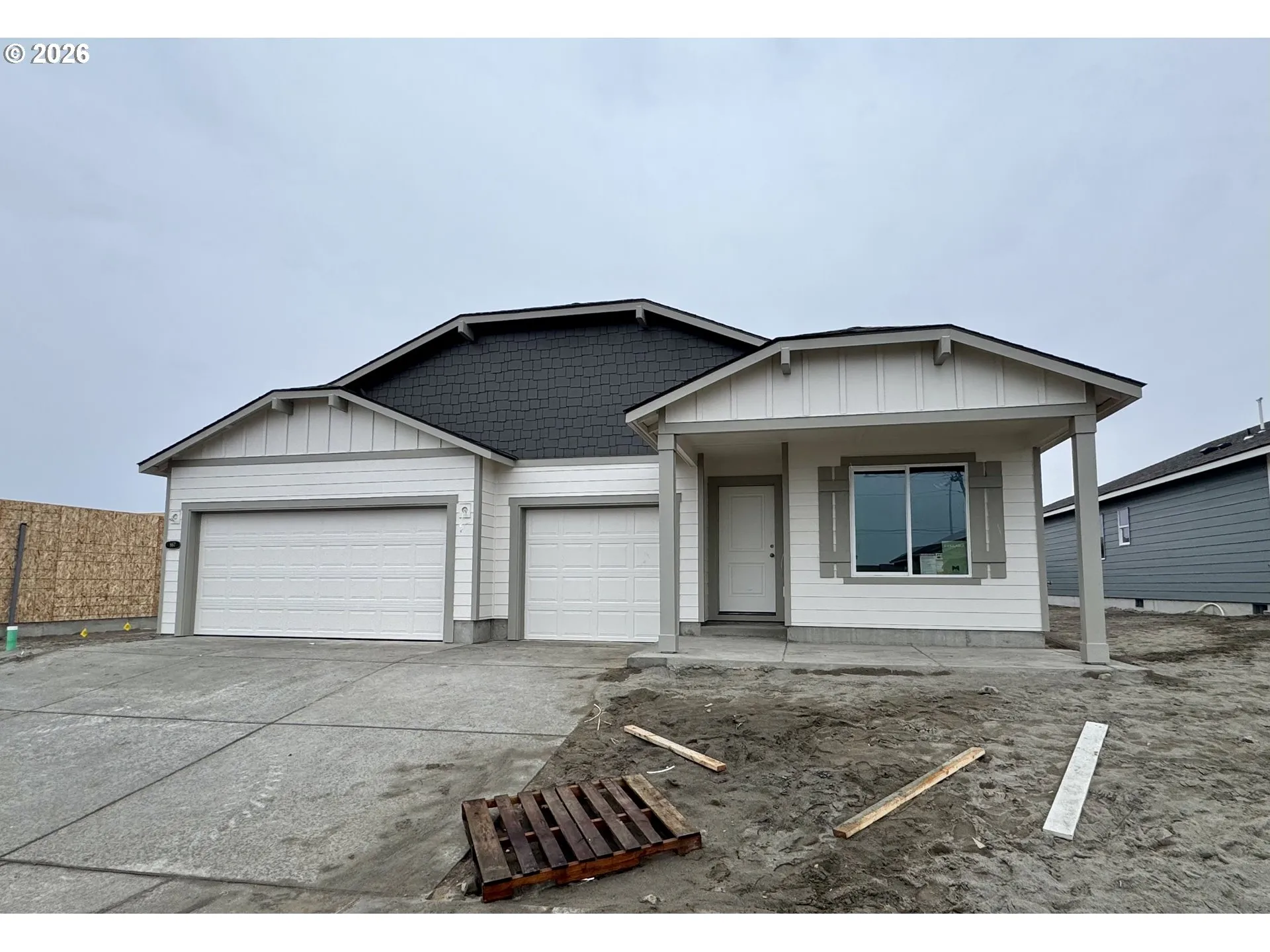 LOT:UM13 – Under construction – Estimated completion date March 2026 – This exquisite brand new 1906 SQFT one level home offers the perfect blend of contemporary design and comfortable living. 4 bedroom 2 bath with luxurious primary suite with double sinks, shower, freestanding soaking tub, and spacious walk-in closet. Deluxe chef’s kitchen with quartz counters, large pantry, island, farm sink, and stainless steel appliances including gas range and dishwasher. The Hope plan in the new Upland Meadows neighborhood in Hermiston OR. Built by award winning builder MonteVista Homes. Open concept living, vaulted ceilings, great room, 95% high efficiency forced air heating, air conditioning, dedicated laundry room, electric fireplace, 3 car garage, and covered patio.