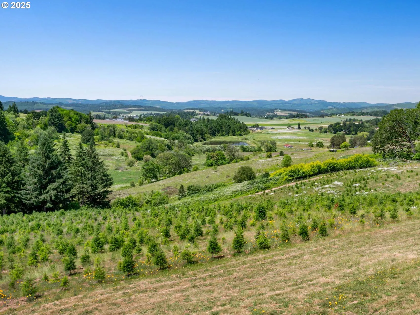 Enjoy expansive, ever-changing views from this private retreat in the heart of Oregon’s wine country. Set on nearly 20 west-facing acres, the custom-built home captures sweeping vistas of rolling farmland, vineyards, and the Coast Range, with stunning afternoon light and unforgettable sunsets. Designed and built by the current owner, the home offers a luxury lodge feel with abundant natural light, warm wood ceilings, a striking log staircase, and an open layout ideal for gathering. The main-level primary suite features a generous bath and walk-in closet, complemented by a spacious laundry and mudroom. The lower level provides a large, flexible bonus area with plumbing in place for a future full bathroom. A long, gated driveway enhances privacy and seclusion. The land includes young Christmas trees maintained by a local farmer, open space for gardens or a hobby farm, a helicopter pad, and a 1,990 sq ft shop with concrete floors, power, water, bathroom, and finished space ideal for a studio or office. Surrounded by vineyards and tasting rooms and just 20 minutes from nearby towns, this rare property offers exceptional privacy, breathtaking views, and everyday convenience.