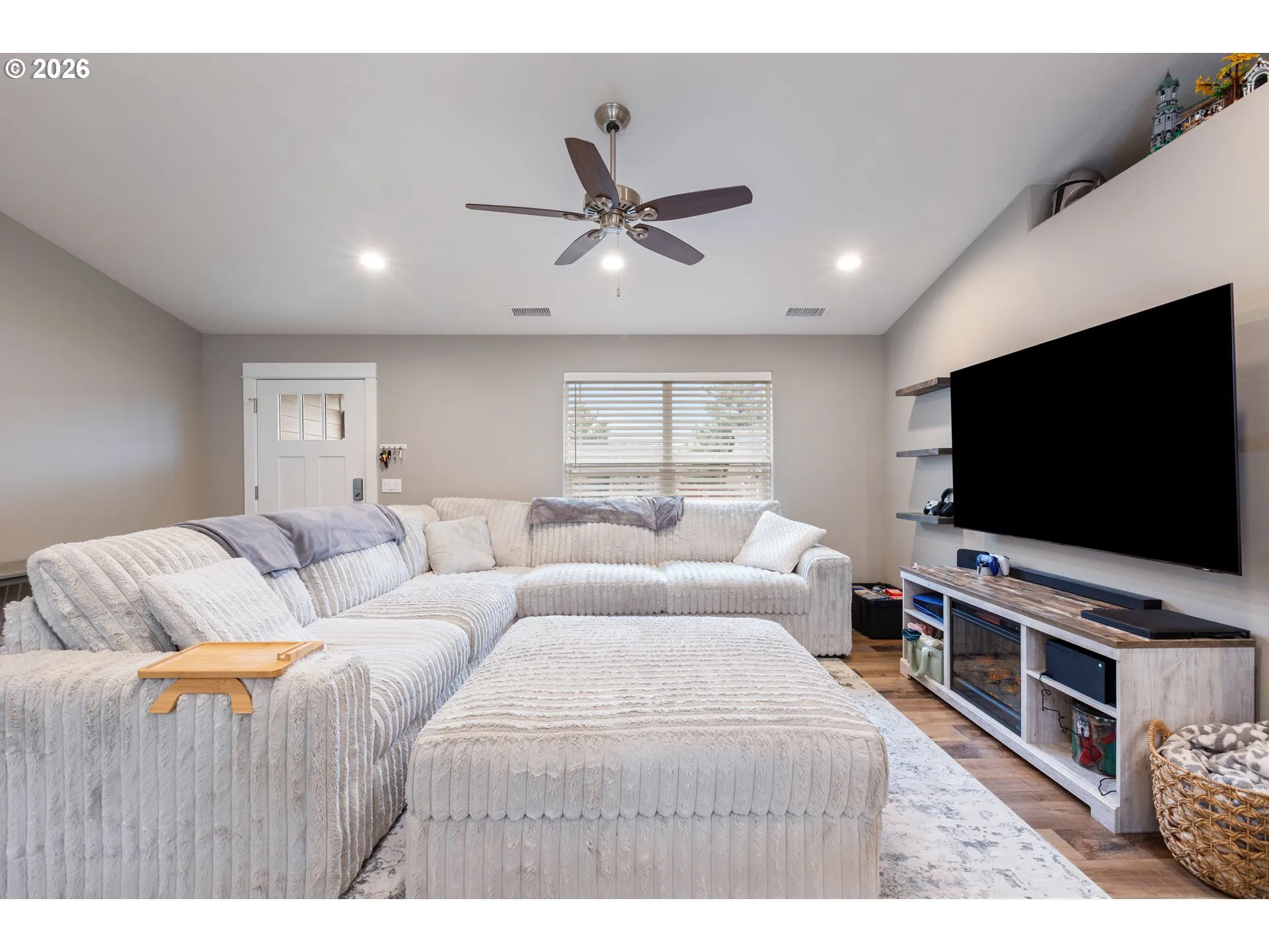 Built in 2019, this well-maintained single-level home offers 3 bedrooms, 2 baths, and an open floor plan that feels bright and easy to live in. The contemporary layout features a vaulted living area, a kitchen with granite counters, island, and eat bar, plus central air for year-round comfort. The kitchen comes complete with the refrigerator and stove, which will stay with the home. Enjoy the patio and fully fenced, dog-friendly yard—perfect for pets, play, or relaxing outdoors. Conveniently located close to a neighborhood park with easy access to green space and walking areas.