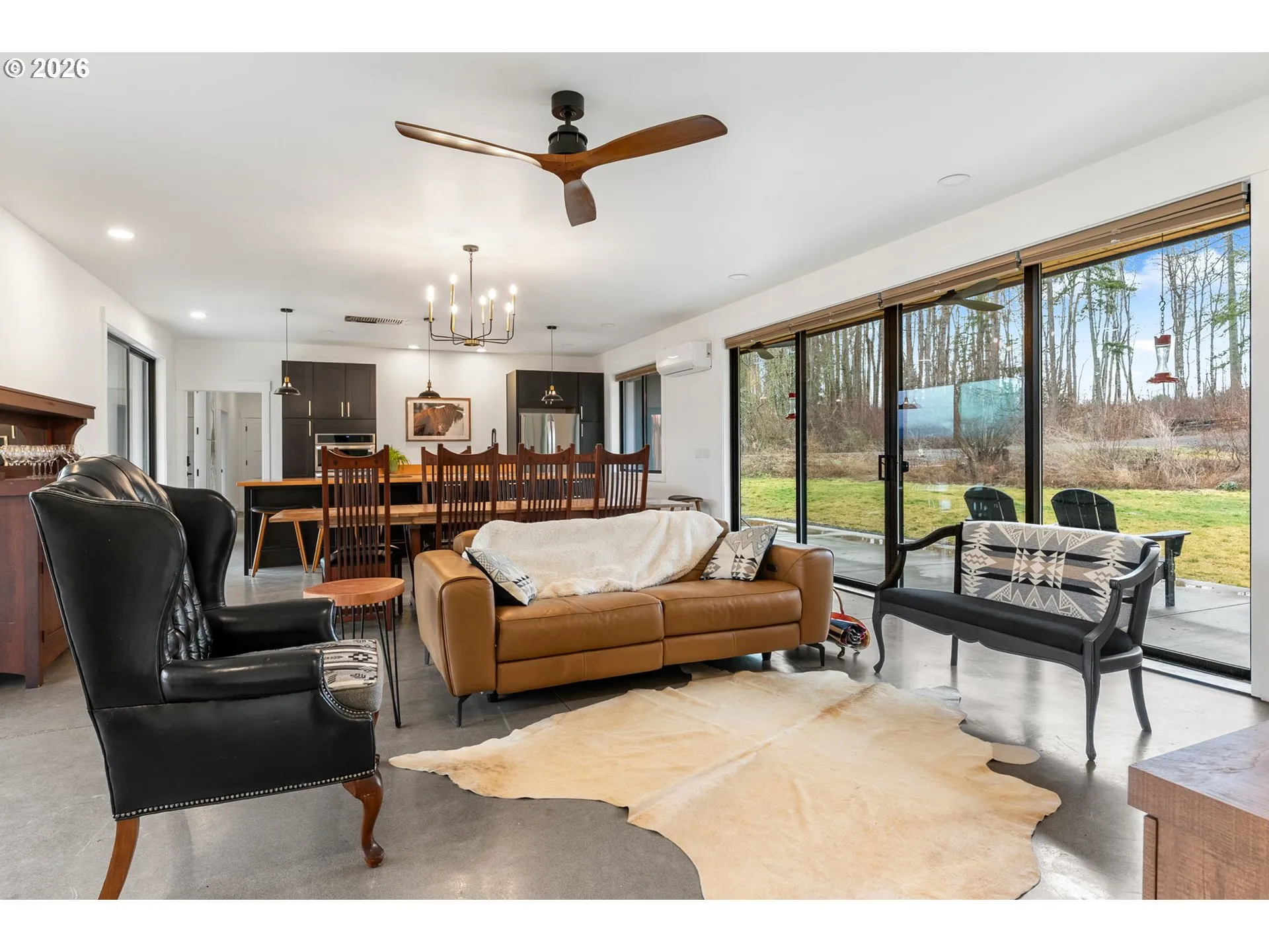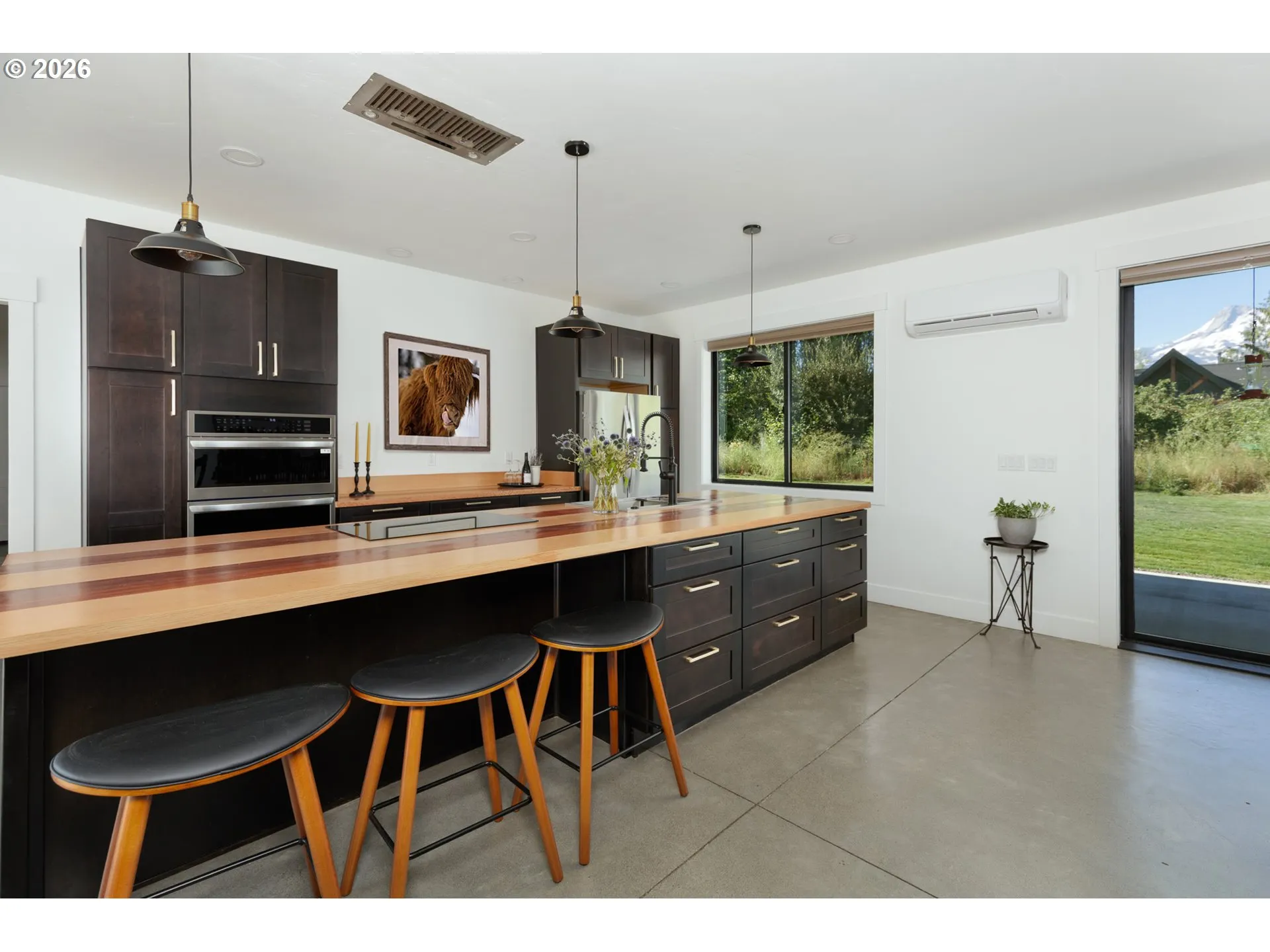 Tucked at the base of Mt. Hood, this newly built, modern single level home blends clean architectural design with everyday mountain living. Located just one mile from the town of Parkdale, 20 minutes to Hood River, and 35 minutes to Mt. Hood Meadows, the home offers easy access to outdoor recreation while remaining nearby local amenities. The thoughtfully designed 2 bedroom, 2.5 bath residence features 1,525 sq ft of open-concept living space filled with natural light. Oversized windows and sliders capture Mt. Hood views and create an airy, calming atmosphere throughout the home. A bonus Peak a boo view of Mt Adams from North side of the kitchen and porch. Minimalist design allows the architecture and setting to take center stage, offering a move-in-ready canvas for a variety of lifestyles. Covered concrete patios extend the living space outdoors, providing comfortable year-round areas for relaxing or entertaining. A secondary covered patio currently used as a hot tub area offers flexible future potential for expanded living space, guest accommodations, or a studio. The property is zoned to allow for an accessory dwelling unit (ADU), offering additional possibilities for future expansion, rental income, or multigenerational living. Whether you’re seeking a full-time residence, a weekend mountain retreat, or a work-from-home escape near Hood River and Mt. Hood, this modern Parkdale home delivers thoughtful design, scenic surroundings, and a convenient location.