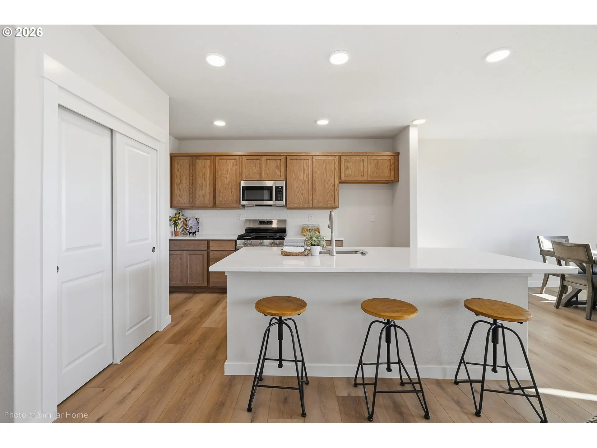This move in ready McKenzie Townhome combines luxury and space in this two-story homeplan. The first floor features an expansive living room and adjoining dining room, both overlooked by an open kitchen that offers ample counter space and cupboard storage. Upstairs, the extravagant main bathroom suite boasts a luxurious vanity with a private water closet and shower, as well as an enormous closet. The two other sizeable bedrooms, each with generous closet space, and a large secondary bathroom complete this well-rounded home. Fencing, landscaping and underground sprinklers included! Built by Hayden Homes with care and quality in mind, this home includes a 300 Point Quality Check and a builder-backed warranty for lasting peace of mind. Photos of similar home