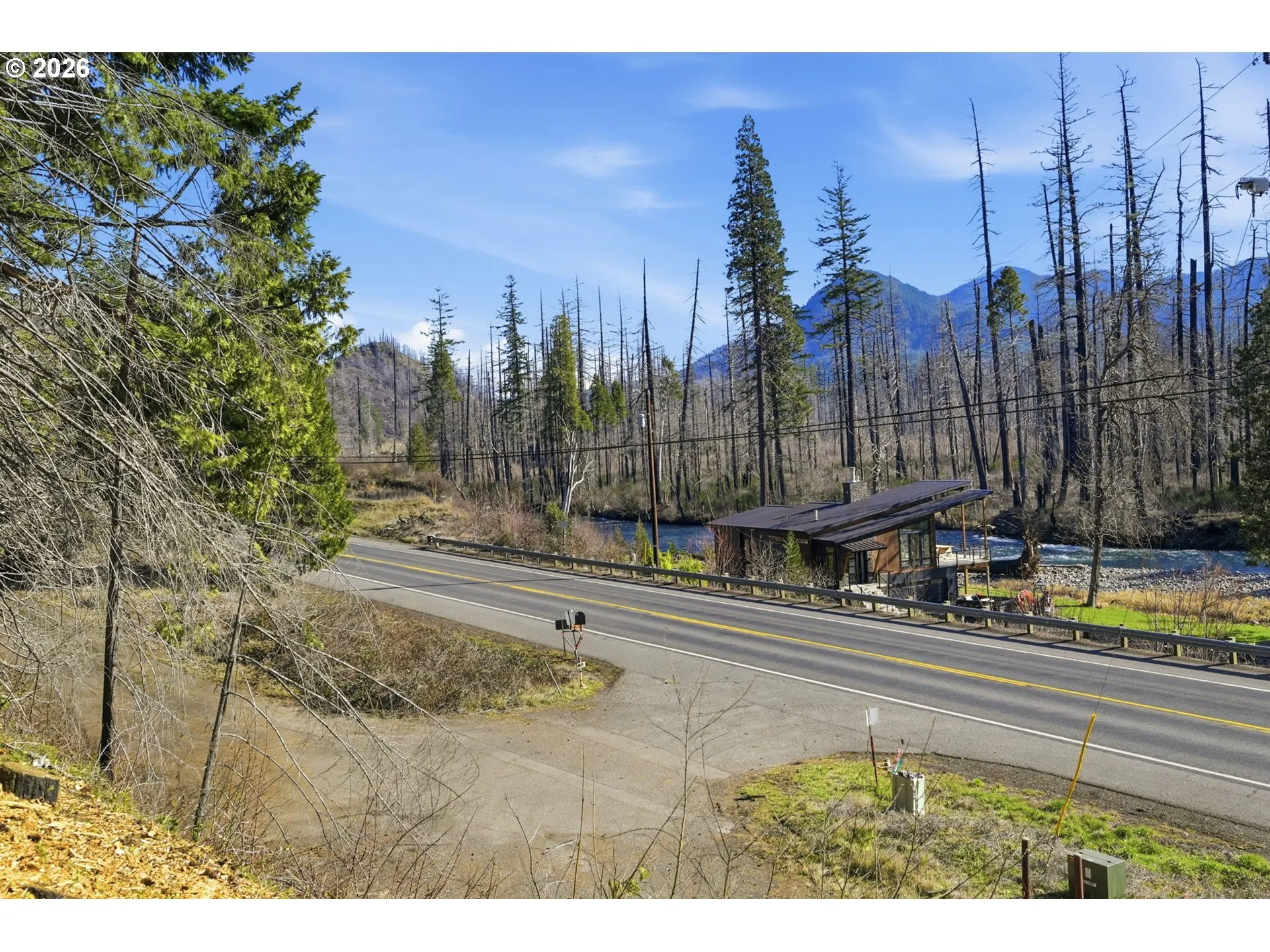 An exceptional opportunity to build your dream retreat in the heart of the McKenzie River. This 5.77-acre RR5-zoned lot offers rare natural beauty, featuring a private creek and waterfall, with septic and electricity already in place. Wake up to serene river views of the McKenzie just across the road and enjoy world-class recreation at your doorstep, including fishing, rafting, and easy access to Blue River Reservoir and Cougar Reservoir. Nearby amenities include Tokatee Golf Course, the McKenzie School District, the new Blue River Library, new medical clinic, a new fire station, and convenient access to the LTD bus route. The original structure was lost in the 2020 Holiday Farm Fire, creating a blank canvas to design a custom home to this remarkable setting.