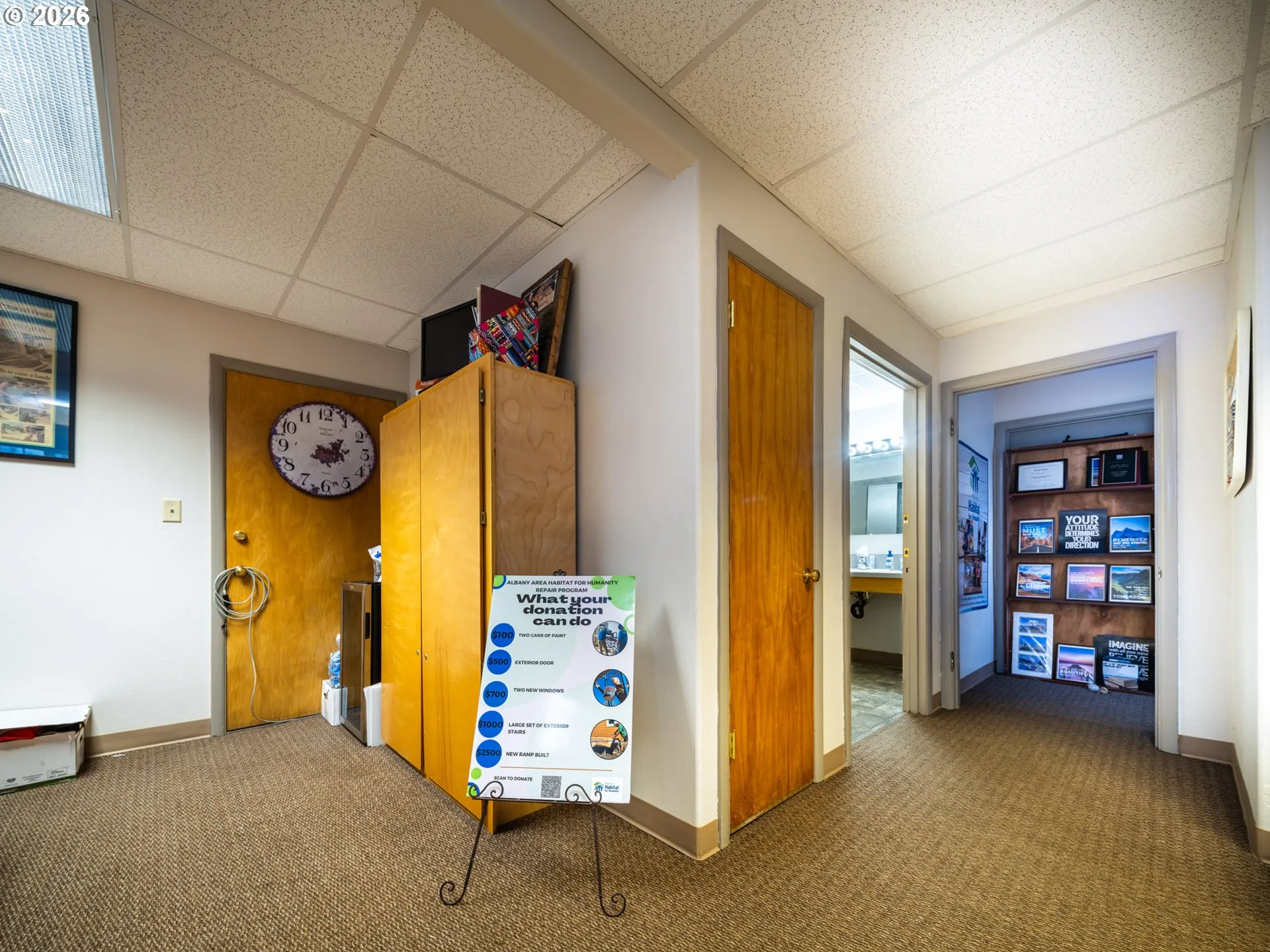 Own a cornerstone in Albany’s Historic Downtown: 2,955 SF brick building (HD zoning) with 5 on-site stalls. Built 1954, fully rebuilt to studs/roof framing in 1998, then refreshed with new exterior + roof in 2025. Three private-entry suites; occupy the 1,450 SF primary suite while Edward Jones + Habitat for Humanity provide $2,335/mo gross income. Rare own-vs-lease opportunity in a high-visibility location.