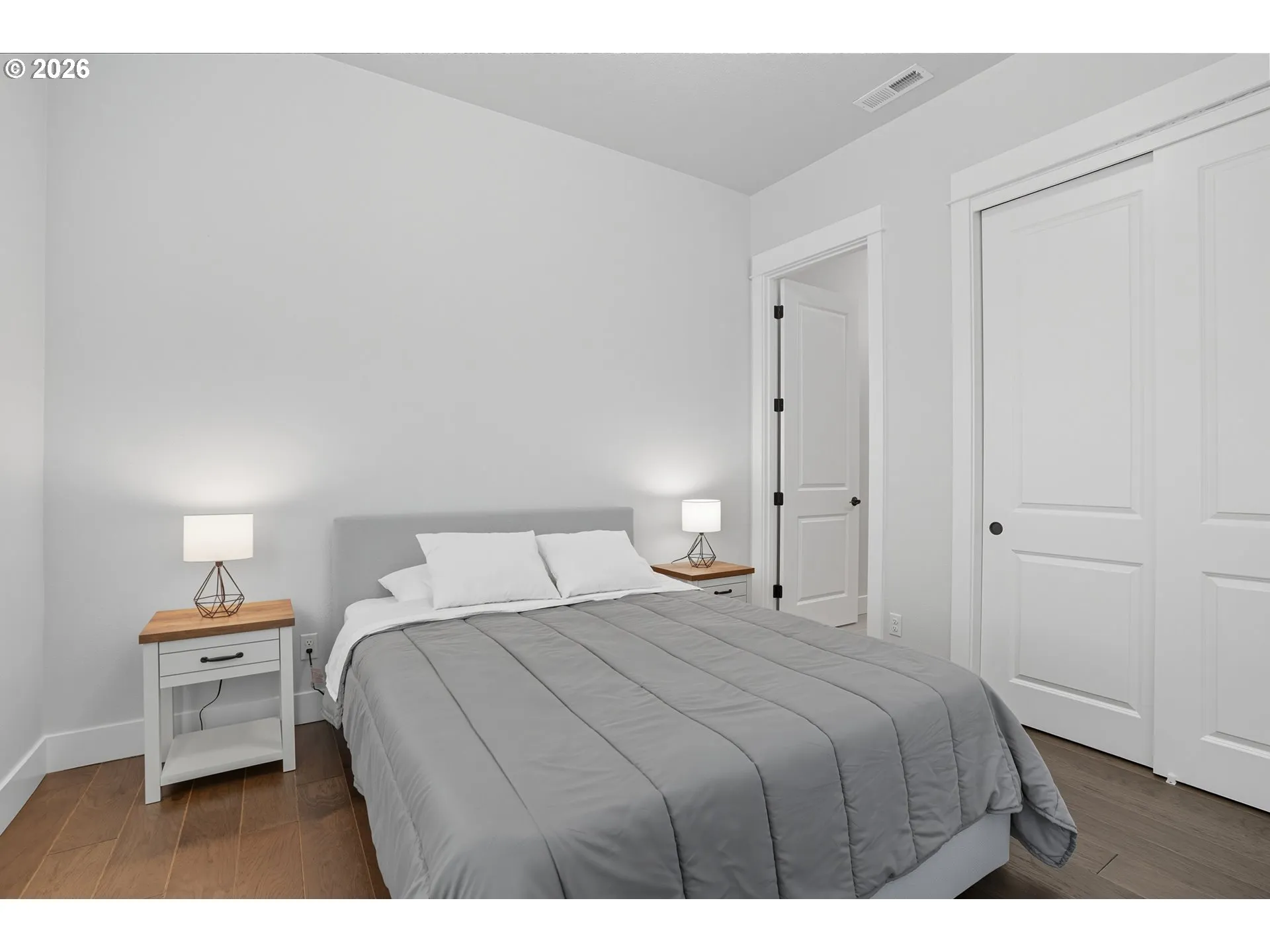 Welcome to this one level home in the new Lacamas Hills neighborhood! Luxury meets functionality in this stunning modern home with upgrades inside and out. Featuring 12’ and 10’ ceilings, quartz countertops throughout, engineered hardwood flooring, cabinetry, lighting, and fixtures, every detail has been elevated. The chef’s kitchen includes a sleek built in refrigerator, oversized island, stainless appliances, and full-height cabinetry, opening to a bright living area with floor-to-ceiling sliding doors and views of the private greenbelt. Retreat to the spacious primary suite with a walk-in closet and spa-like bathroom. Three full baths are beautifully finished, and the dedicated dining space overlooks forest views. Outdoor upgrades include a low maintenance turf yard, sprinklers front and back, raised garden beds, gas BBQ hookup, and a covered patio for year-round enjoyment. The 3-car garage provides ample storage space. All just minutes from Lacamas Lake, top-rated schools, shopping, and trails.
