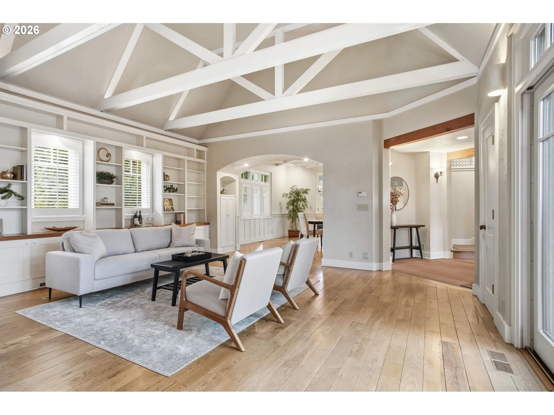 This one is it! Absolutely stunning custom designed with incredible architectural details, exquisite style, unique in all the best ways and seamlessly flows throughout the entire house. Gorgeous wood floors and extremely well-maintained paint and high quality trim work. WOW factor with incredible views from the front patio and balcony. Feels like a villa retreat- perfect for entertaining, relaxing, living in style with wonderful use of space. Primary bedroom on main level with 3 closets, heated bathroom floors and sound system. So many built in features and excellent use of space. Living room and dining room will leave you in awe taking in the beauty and ceiling beams and details while enjoying the warmth of from the fireplace.Family room features second fire place. Multiple french doors lead to patio spaces and tasteful landscaping.Kitchen has great windows, two sinks and amazing custom cabinets and more.Office on main level has built-in desk and bookshelves beautiful window view and a sliding door with half window for privacy and open feel.Upstairs- Balcony with amazing views Be sure to open the bookcase/door that leads to a bonus room off bedroom #2! Bedroom #3 also has extra large storage space in addition to large closet. Gardeners will delight in the additional work space area attached to the 2 car garage with access to the lovely outdoor spaces. Also includes wine storage closet, cheers! So many special touches, this is a must see. See floor plan in photos. Open House Saturday Feb. 14th 1:00-4:00pm