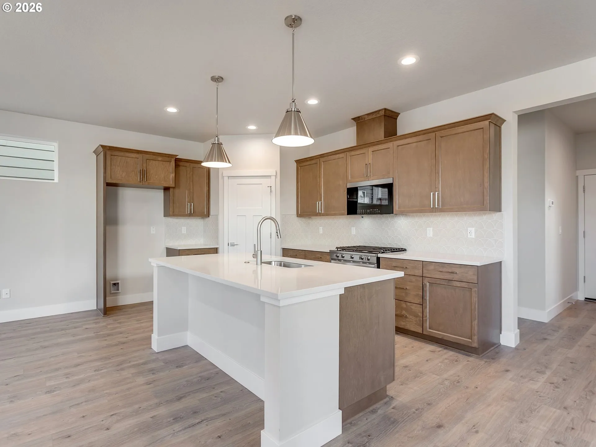 Lot 16 at Scholls Meadow by Riverside Homes is the 2466 plan with 5 bedrooms including a MAIN LEVEL bedroom and full bathroom ideal for guests or multi-generational living. CORNER LOT! Bright, open layout in the living spaces including great room with gas fireplace, dining room with sliding door access to covered patio, and a spacious kitchen with gas range, island, quartz and walk-in pantry. Bonus loft upstairs makes a great media room or workout space. Luxurious primary suite includes tiled shower and soaking tub, double vanity, and huge walk-in closet. Traditional two car front load, attached garage with driveway and on street parking. Fully fenced backyard with gate. Modern exterior. Must see to appreciate the style, beautiful finishes, and functionality of these homes! Photos and video of similar home. Model Open Thurs-Mon 12:00-5:00pm (13877 SW SABRINA AVE)