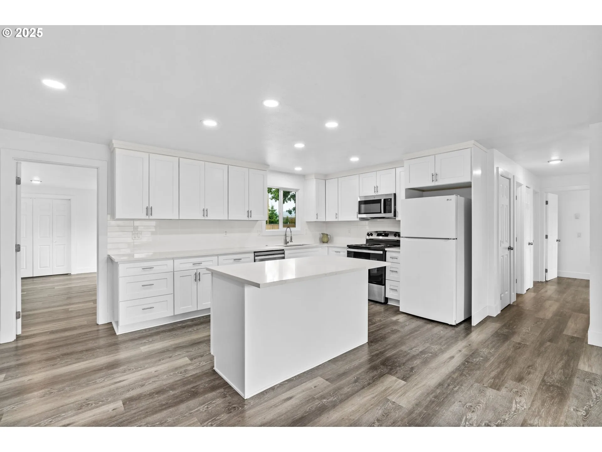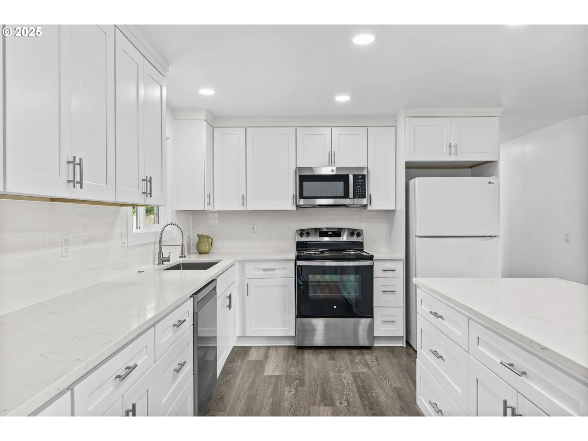 This fully remodeled 4 bedroom home is bright, white, and beautifully maintained inside and out. New roof, interior and exterior paint, baths, kitchen and more. The open living room and kitchen concept creates an inviting flow, with a stunning white-on-white kitchen at the heart of the home. The backyard is spacious, with two patio areas and full fencing, offering a private and flexible outdoor space. Sitting on a generous inside corner lot, the home enjoys extra space and a tucked-away feel. Conveniently located, this property blends modern style with comfort and livability. Seller is offering a home warranty.