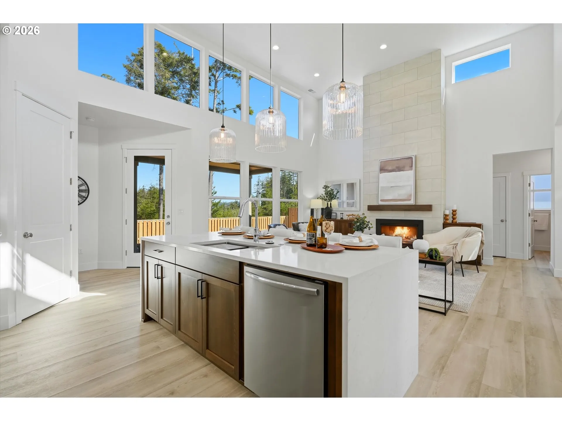 Experience coastal living at its finest in this beautifully designed single-level home featuring 3 bedrooms and 2 bathrooms. The spacious primary suite includes dual closets—one walk-in—and a spa-inspired en suite with a spacious tiled shower, soaking tub, and dual sinks.The open-concept great room is warm and inviting with tall ceilings, a gas fireplace with custom built-ins, and seamless flow into the dining area and chef’s kitchen. Here you’ll find a center island, solid surface countertops, a workstation sink upgrade, and an upgraded appliance package with built-in cooktop, oven, microwave, and hood range. A dedicated laundry room with storage adds convenience.Outdoor living is equally impressive with a covered back patio overlooking forested views. Elevated above the coastal tsunami zone, this home offers both peace of mind and panoramic vistas of the trees, coastline, and Yaquina Bay.Located in the sought-after Wilder community, you’ll enjoy a walkable lifestyle with access to local trail systems, dog parks, a disc golf course, restaurants, and more.A perfect blend of comfort, function, and Northwest beauty awaits.