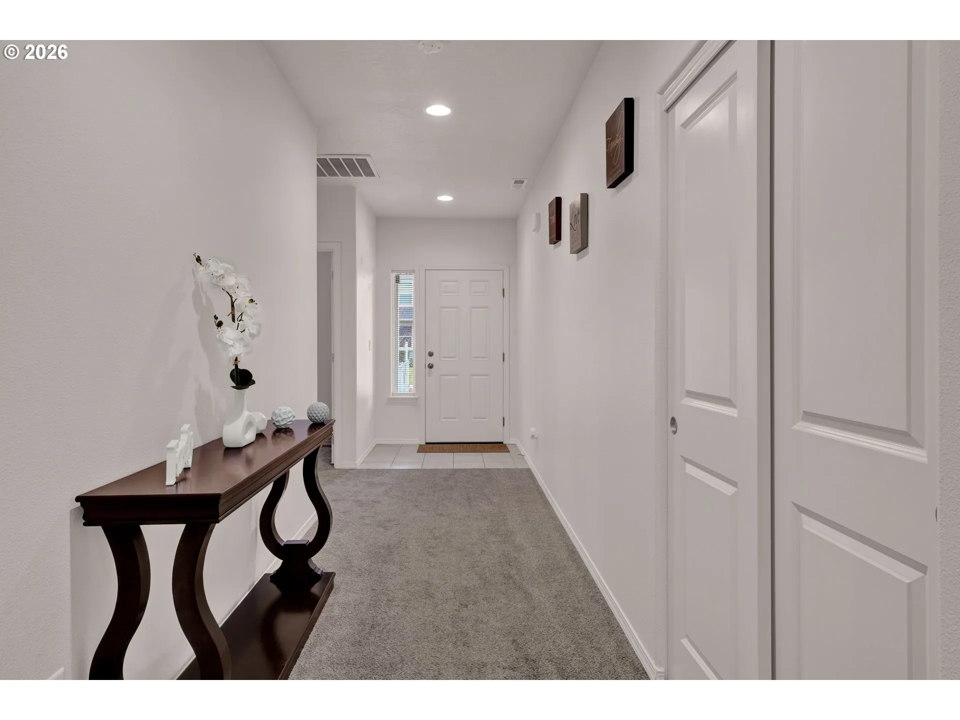 The end of the street location offers privacy and a view of the mountains & trees, along with RV parking. Enjoyable front porch leads into the expansive living room that flows into the dining area, creating an ideal setting for both everyday living and entertaining. The open kitchen is a chefs dream, offering abundant counter space, ample cabinetry, a convenient breakfast bar, large pantry and the added flexibility of a desk or beverage center. The private primary suite features a dual vanity bath, separate shower, garden tub and an impressively large walk-in closet. Two additional well proportioned bedrooms- can easily transform into a den or office. The covered back patio offers year round outdoor space. Low maintenance fully fenced backyard with sprinklers allows you to add features and make the space your own or just sit by the firepit and enjoy