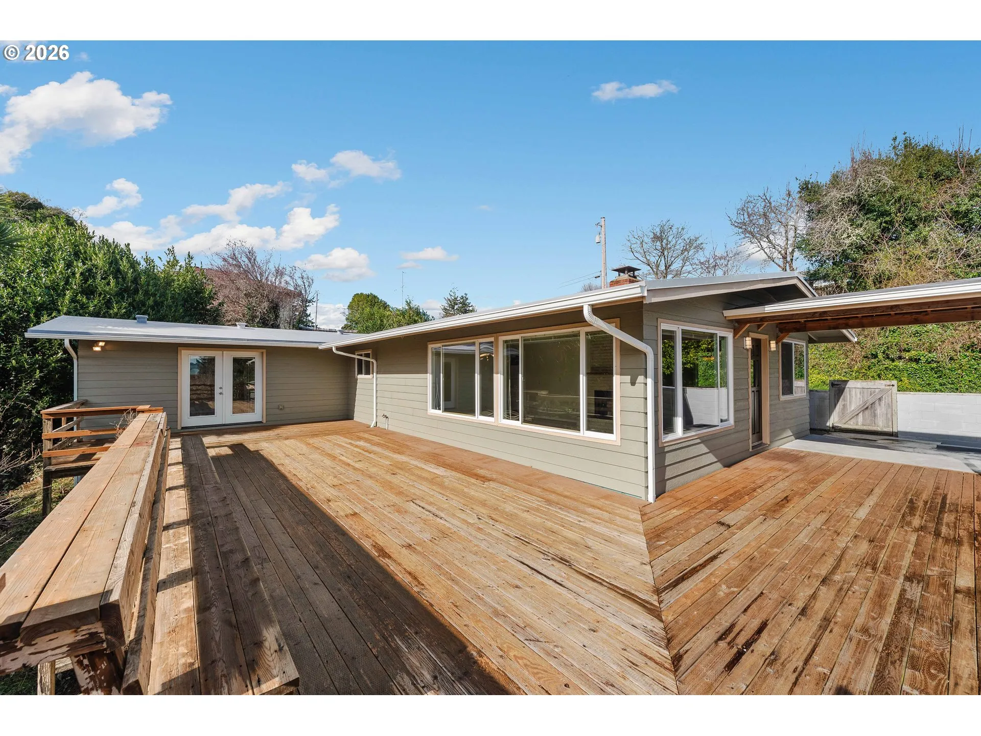 Enjoy bay views from this newly updated 4-bedroom, 2-bath home featuring a detached garage and expansive wraparound deck—perfect for coastal living. Interior updates include new carpet, quartz kitchen countertops, and updated vinyl windows, along with a new TPO membrane roof. The private, fenced backyard offers room for RV or boat storage. Ideally located close to shopping, schools, and ocean beaches. Move-in ready and designed for comfort and convenience.
