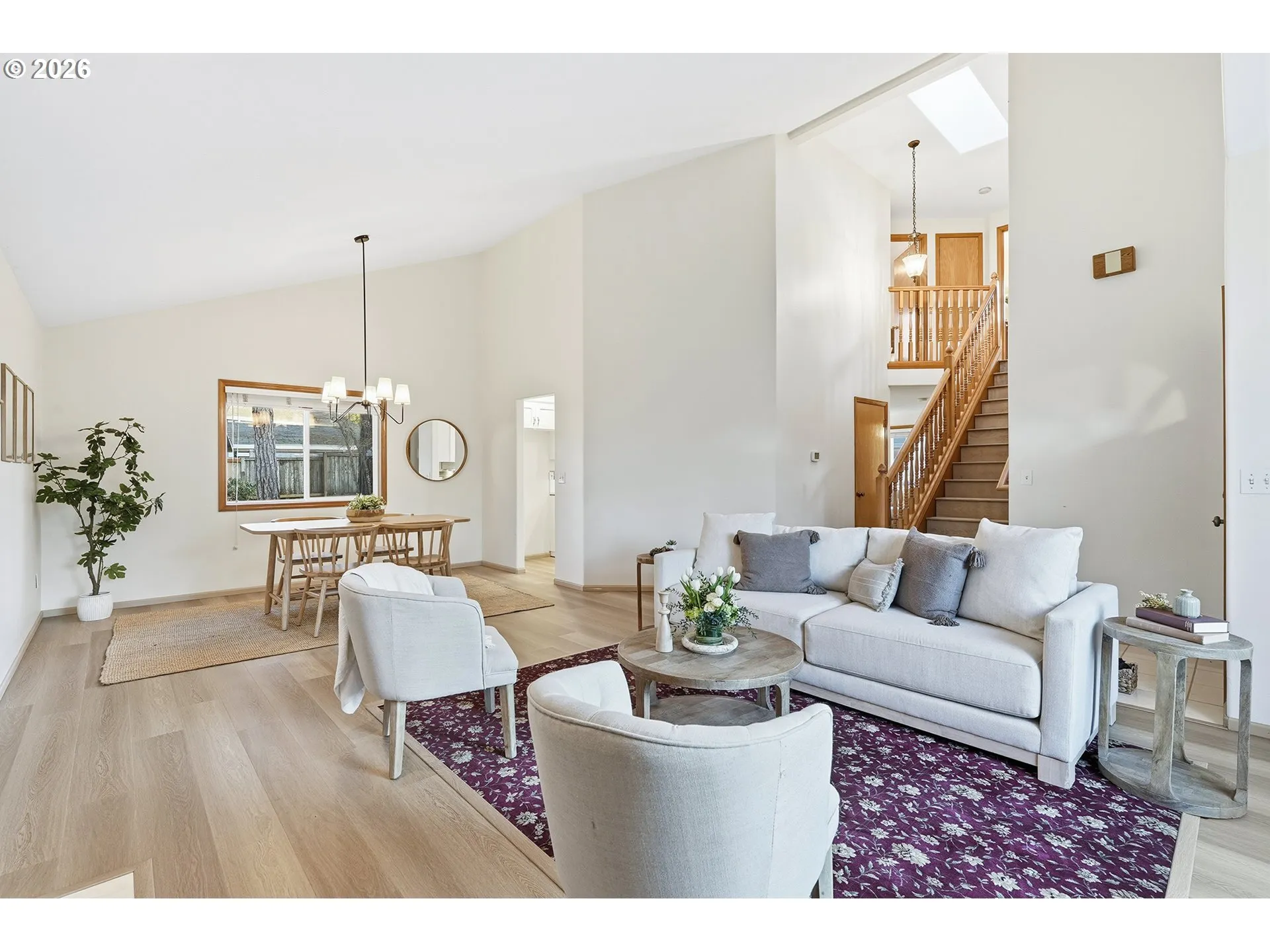 If you’ve been searching for a home that instantly feels warm, welcoming, and thoughtfully cared for, this is the one. Tucked into one of Tualatin’s most desirable and beautifully maintained neighborhoods on a generous 0.21 acre lot, this inviting Traditional offers a layout that simply works. Fresh interior paint and abundant natural light create an easy, uplifting feel the moment you step inside, while soaring vaulted ceilings and a cozy gas fireplace anchor the formal living room in warmth. At the heart of the home is a fully updated kitchen designed for gathering, featuring abundant cabinetry, modern finishes, and a sunny nook that opens seamlessly to the backyard. And what a backyard it is. A truly stunning outdoor space filled with an array of blooming florals, a tranquil water feature, and multiple areas to relax or entertain. It feels peaceful and private, yet perfectly usable for everyday life. Upstairs, the vaulted primary suite continues that sense of comfort with a spacious walk-in closet and ensuite bath featuring a walk-in shower, accompanied by two additional bedrooms and a full bath, with laundry conveniently located on the main level. Ideally located just minutes from Bridgeport Village, Meridian Park Hospital, neighborhood parks, dining, shopping, and easy I-5 access.