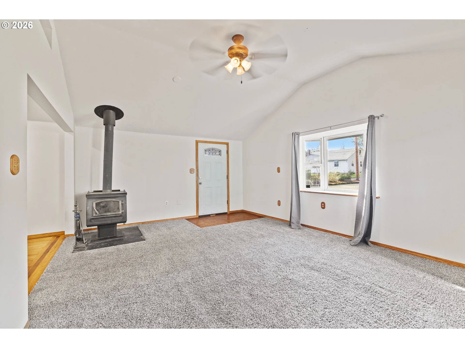 Cute and cozy 2 bed, 1 bath bungalow set back from the street for added privacy. Nestled among mature trees, this home offers a wood stove, vaulted ceilings and fenced yard, ideal for pets, gardening, or relaxing outdoors. A wonderful opportunity for first-time buyers or those looking to downsize.