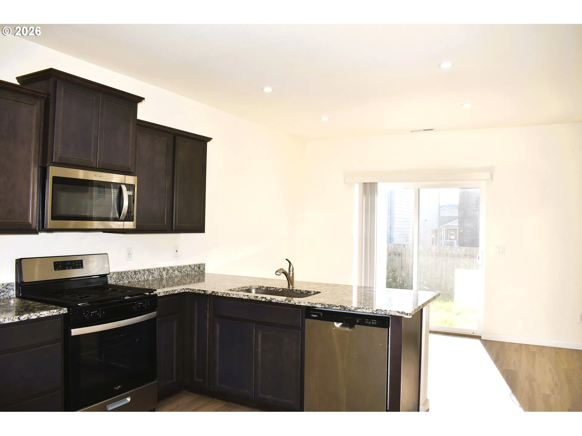 Welcome to this charming home. Low HOA. Low Tax Rate. Inside, you will find an open-concept atmosphere with high ceiling and LVP flooring throughout the main level. The kitchen features granite counter top, Whirlpool appliances, pantry, eat-bar, open to a dining room. You can relax in this spacious living room while watching TV or reading a book. Three bedrooms are upstairs offering comfortable layouts, while the bathrooms offer updated vanities, modern fixtures, & shower. Enjoy fresh air at the patio during sunny days or walk straight to the park (coming) right across the street for a stroll. You won’t be disappointed in this new and safe community with a short distance to local businesses, restaurants, and shopping. MUST SEE TO APPRECIATE!