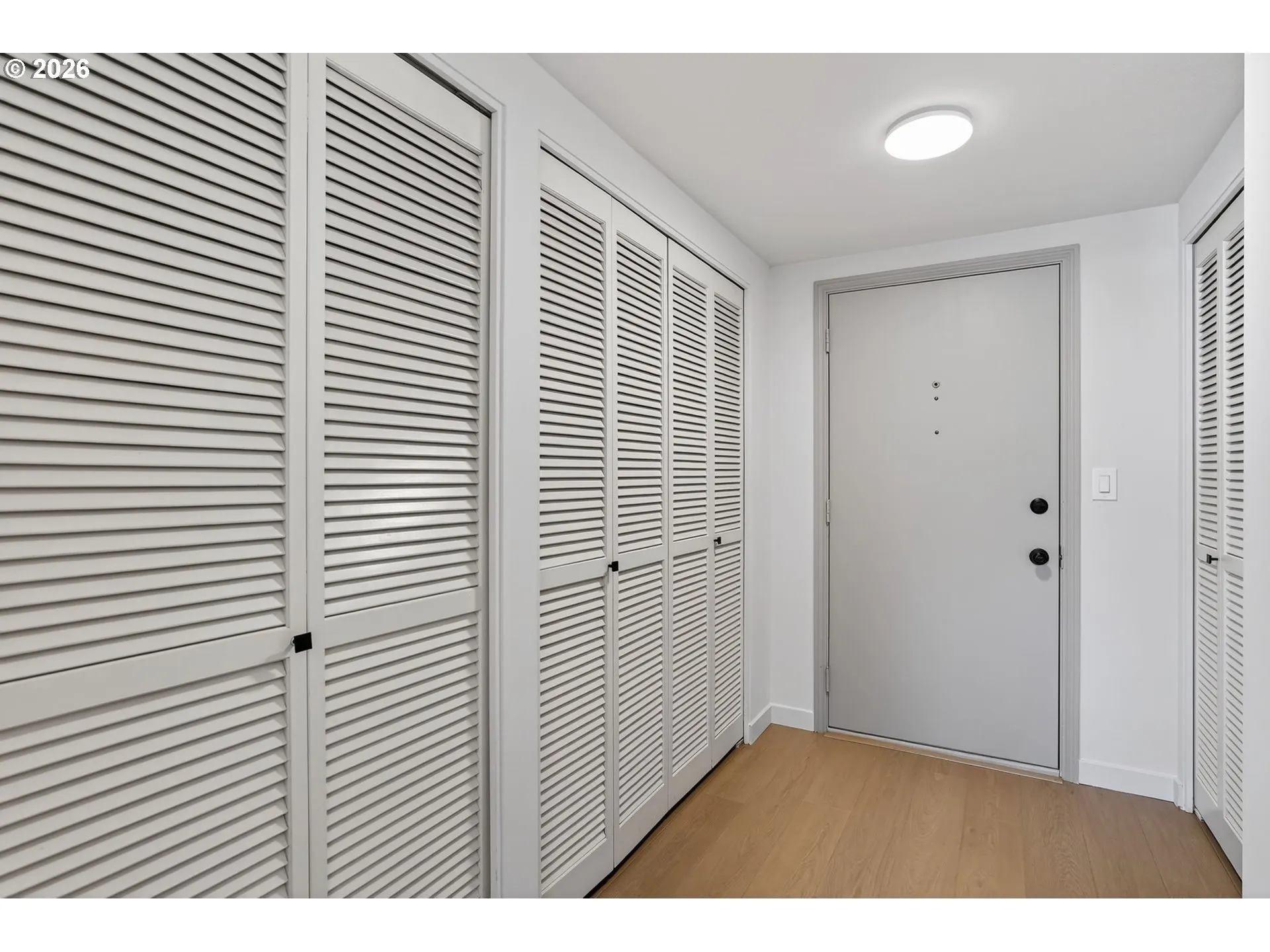 This two bedroom and one and a half bath condo is centrally located in South Downtown Portland. This bight and light condo with a great room concept has been recently refreshed with all new Luxury Plank vinyl flooring thoughout, new paint and baseboards. Kitchen has been opened up to Living and dinning area to create an open and light floorplan great for entertaining. Views of the Willamette River and Mt. St Helens from the dining area. Twinkling City lights and West hills views from the living room and the covered balcony great to enjoy peaceful sunsets. . New cozy electric fireplace, new hot water heater. Primary bedroom with bath right across the hall. The second bedroom is versatile and can serve as a guest room, home office, or cozy den. A convenient half bath completes the layout, ideal for guests. This condo also offers access to fantastic amenities, including 2 workout rooms, 2 community lounges. Enjoy the indoor saltwater pool with jacuzzi and sauna or take dip in the outdoor pool during summer months. 53 Guest parking spaces unheard of downtown. Light rail and bus line outside your door, the street car is one block north. Stroll the Halprin sequence to dining, and entertainment just steps away, you’ll enjoy all that city living has to offer. Don’t miss your chance to own this stylish urban retreat! Close to OHSU and Portland state