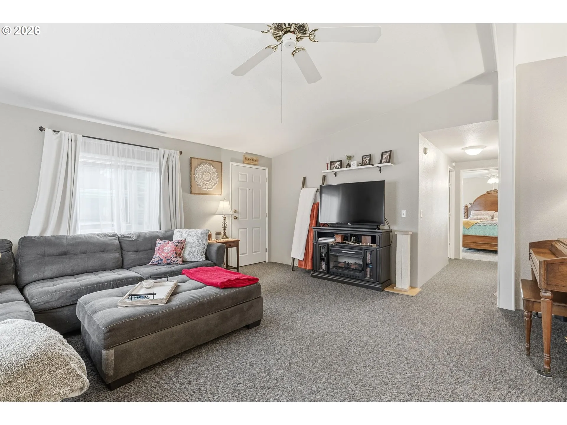 Cute open-concept home located in the desirable Heron Pointe Park in West Longview, ready for its next owner. This 2-bedroom, 2-bath home offers spacious living areas and a bright sunroom, perfect for relaxing year-round! The primary bedroom features a walk-in closet and jetted tub with a newer toilet. The kitchen includes a skylight and newer refrigerator. Additional highlights include ramp access, carport parking, a large storage room, covered back deck, and an additional garden shed. Offered at the best price in the park. Community amenities include playgrounds, basketball court, common recreation room, and neighborhood events.