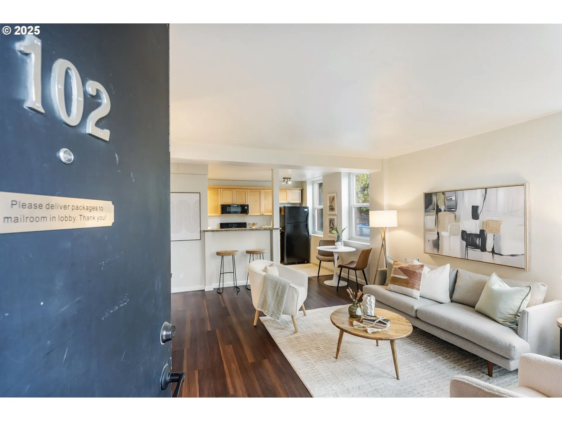 OPEN HOUSE 1/31 12:30-1:30! Tucked away behind PSU, yet just moments from everything, this one-of-a-kind condo offers the perfect blend of urban convenience and quiet comfort. Enjoy easy access to the PSU Farmers Market, the Cultural District, downtown, freeways, the street car, an abundance of restaurants and shops all within walking distance. This unique unit is freshly painted & the only one in the building with private, exterior access, offering a rare level of privacy and convenience. Step inside to an open-concept living space, bathed in natural light and offering peaceful city views. Relax or entertain with ease, you’re even close enough to watch PSU football games from the comfort of your own home! The kitchen features full-size appliances, granite countertops, and a charming eat-in bar that seamlessly connecting the kitchen and living areas. The recently updated bathroom is fresh, light, and bright, with modern finishes throughout. The well-maintained HOA includes water, sewer, garbage, gas, insurance, and building maintenance, plus recent upgrades like a newer roof and an energy-efficient mini-split heating & cooling system. This condo also offers in-unit washer & dryer, a separate secure storage unit, and easy street parking with a Zone B permit for just $100/year. Perfect for first-time buyers, PSU faculty or students, or anyone seeking a downtown pied-à-terre, this condo is also an excellent option for investors (no rental cap). Don’t miss the opportunity to make this urban gem your own! Seller concessions available towards buyer’s closing costs, temporary rate buy down, or HOA dues with acceptable offer!