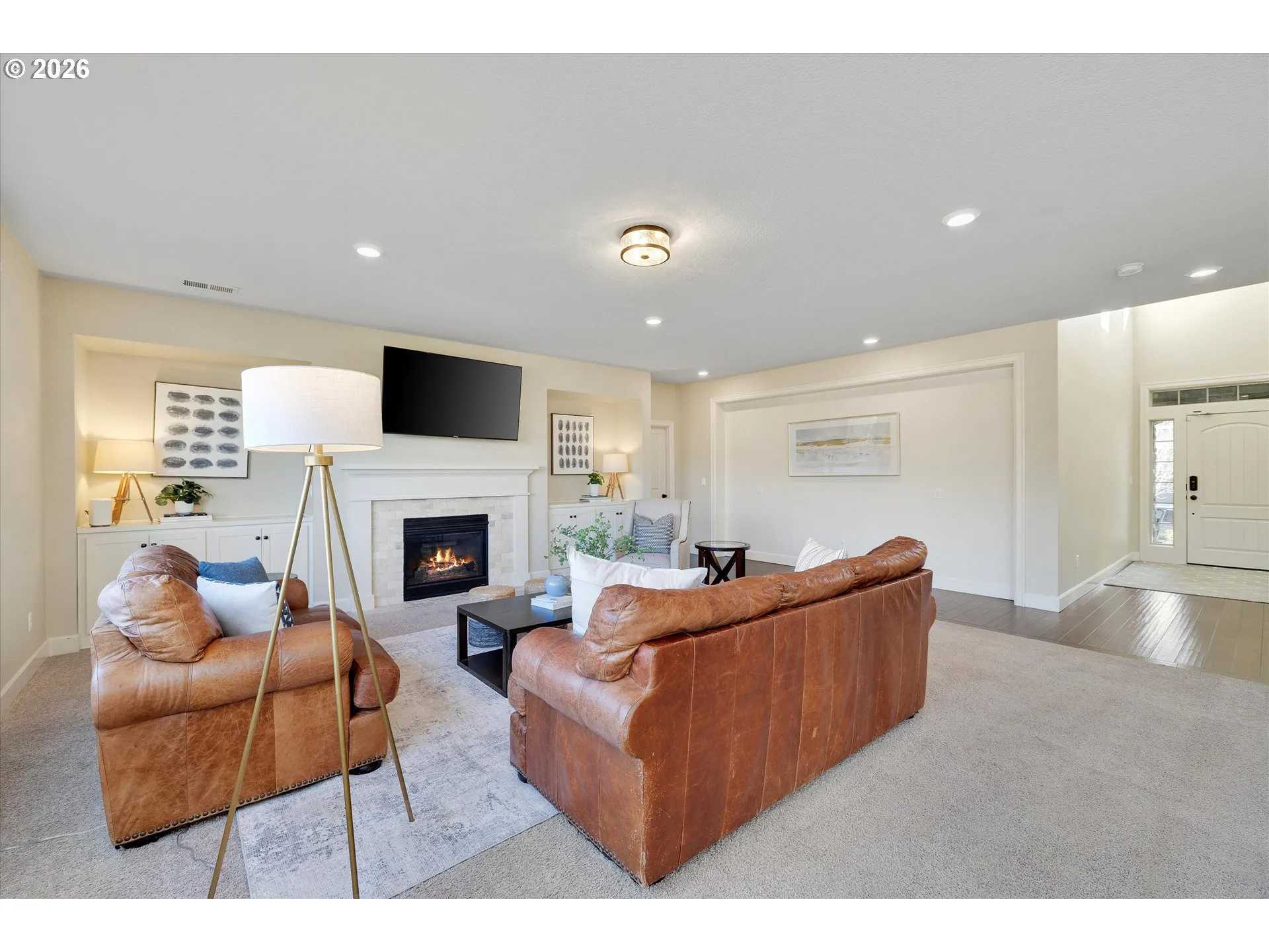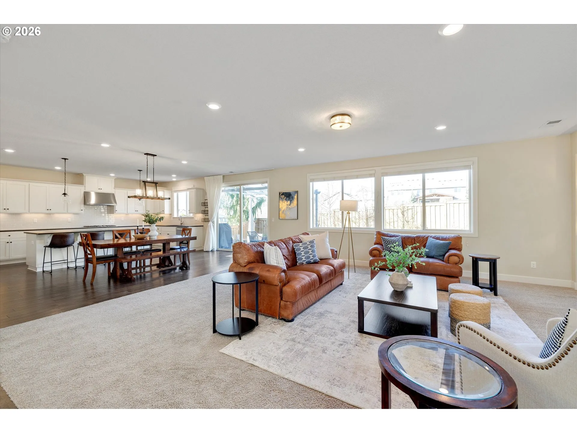Built in 2015, this stunning 3,899 sq ft home offers a rare layout with an attached fully self contained 722 sq ft Multi-Generational Suite. This ground level suite is very private with its own entrance, dedicated garage, backyard with patio, pergola and sun-shade. Also includes 1 bedroom and on-suite bathroom, 15×13 spacious living room, stackable washer and dryer, generous kitchen with custom island and Brava oven & control over your own heat & AC, separate tankless water heater and engineered wood floors. This versatile space is ideal for multi-generational living, guests, college students, or add’l entertaining space for the home. The main home features 3176 sq ft, engineered wood floors on the main, EXPANSIVE kitchen/great-room concept, full of light, gas fireplace w/ built-ins and & 9 ft ceilings. Upstairs features 20X15 bonus loft room, primary suite with double sinks, & HUGE walk-in closet + an additional 3 bedrooms and 2 bathrooms (one Jack-n-Jill), large laundry room and plenty of storage thru-out the home. Located in a premier Happy Valley neighborhood with territorial backyard and Mt Hood view from upstairs & multi-gen suite front porch. Private HOA Park directly behind home. Enjoy the proximity to New Seasons, restaurants, trails, nature & 205….A truly one-of-a-kind opportunity offering space, privacy, and flexibility in an unbeatable location. All appliances are included.