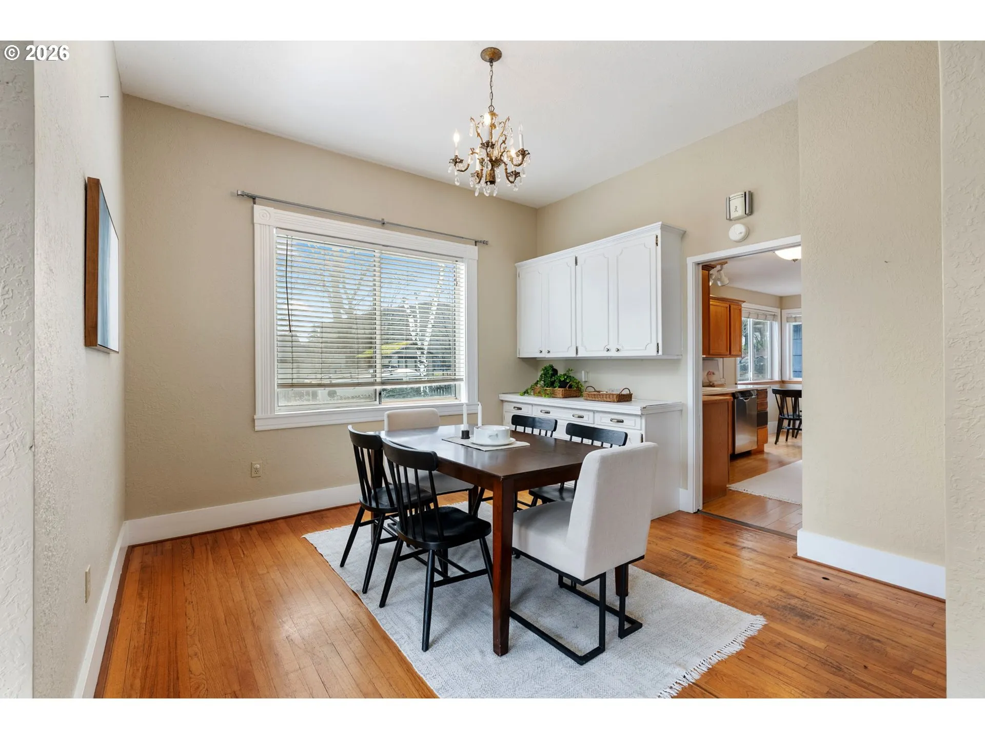 Experience the charm of Hood River living in this character-filled 1900s Craftsman-inspired home. Graced with peek-a-boo views of the Columbia River, 10-foot ceilings, and original hardwood floors throughout the living room, dining room, bedrooms, and staircase, this home offers warmth and timeless appeal. The flexible floor plan includes a main-level bedroom and full bathroom, ideal for guests or everyday living. The kitchen and bathrooms feature newer flooring and offer a great opportunity to update and personalize. Multiple system improvements provide year-round comfort and ease. Start your mornings on the covered front porch taking in the views or unwind on the private patio surrounded by seasonal blooms including wisteria, lavender, and tulips. Situated on a corner lot, the property offers off-street parking, an attached garage with loft storage areas, and an unfinished basement/crawl space with exterior access—perfect for additional storage. Located just blocks from downtown Hood River, this home places you with-in blocks of local shops, dining, and events and minutes from waterfront recreation, trails, and the outdoor lifestyle the Columbia River Gorge is known for. A wonderful opportunity to own a character-rich home with room to make it your own in one of Hood River’s most desirable neighborhoods.