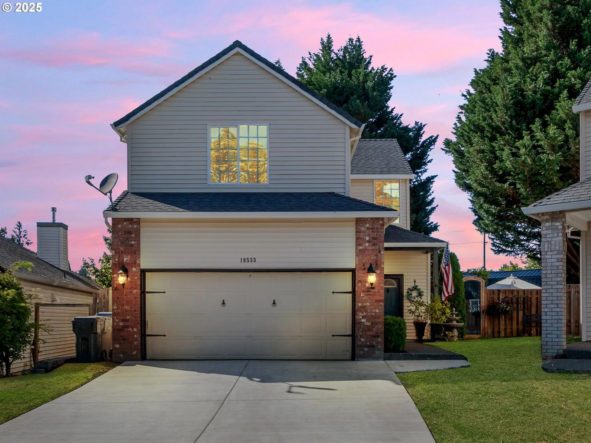 Welcome to 18533 SW Colfelt Lane a charming two-story Craftsman nestled at the edge of Sherwoods desirable Woodhaven community. From the moment you arrive, the curb appeal, extended driveway for added parking, and privacy of a dead-end street, set the tone for this thoughtfully updated home.Inside, you’ll find warm laminate flooring throughout, white millwork and doors, designer lighting, and fresh paint tones that complement the home’s welcoming atmosphere. The remodeled kitchen features a modern farmhouse design with subway-set tile backsplash, corian countertops, stainless steel appliances, and wainscoting accents that flow beautifully. The dining nook leads to covered outdoor living, extending the home to the outdoors. You’ll also find a striking stone fireplace with stacked stone and live-edge mantle, creating a cozy centerpiece with a nod to the beautiful PNW lifestyle. Upstairs, the primary suite offers vaulted ceilings, a walk-in closet, and a beautifully remodeled ensuite with marble tile floors and dual vanities. Two additional bedrooms each include their own charming touches from accent walls and designer lighting to craftsman details, plus a full bathroom and separate laundry room with tile flooring and extra storage.Step outside to your own private retreat. The backyard is a standout feature, with covered outdoor living, raised garden beds, mature trees, a 10×19 barn-style shed, and mature landscaping filled with seasonal color. Not only a place to exercise your green thumb, but plenty of space to relax and entertain.Additional highlights include a two-car garage which hosts a storage/hobby room, a dramatic vaulted entry, and a powder bath on the main with custom furniture-style vanity and copper vessel sink. You’ll also enjoy quick access to top-rated Sherwood schools, the YMCA, walking paths, and everything nearby Woodhaven and sought after Sherwood has to offer.No HOA dues!