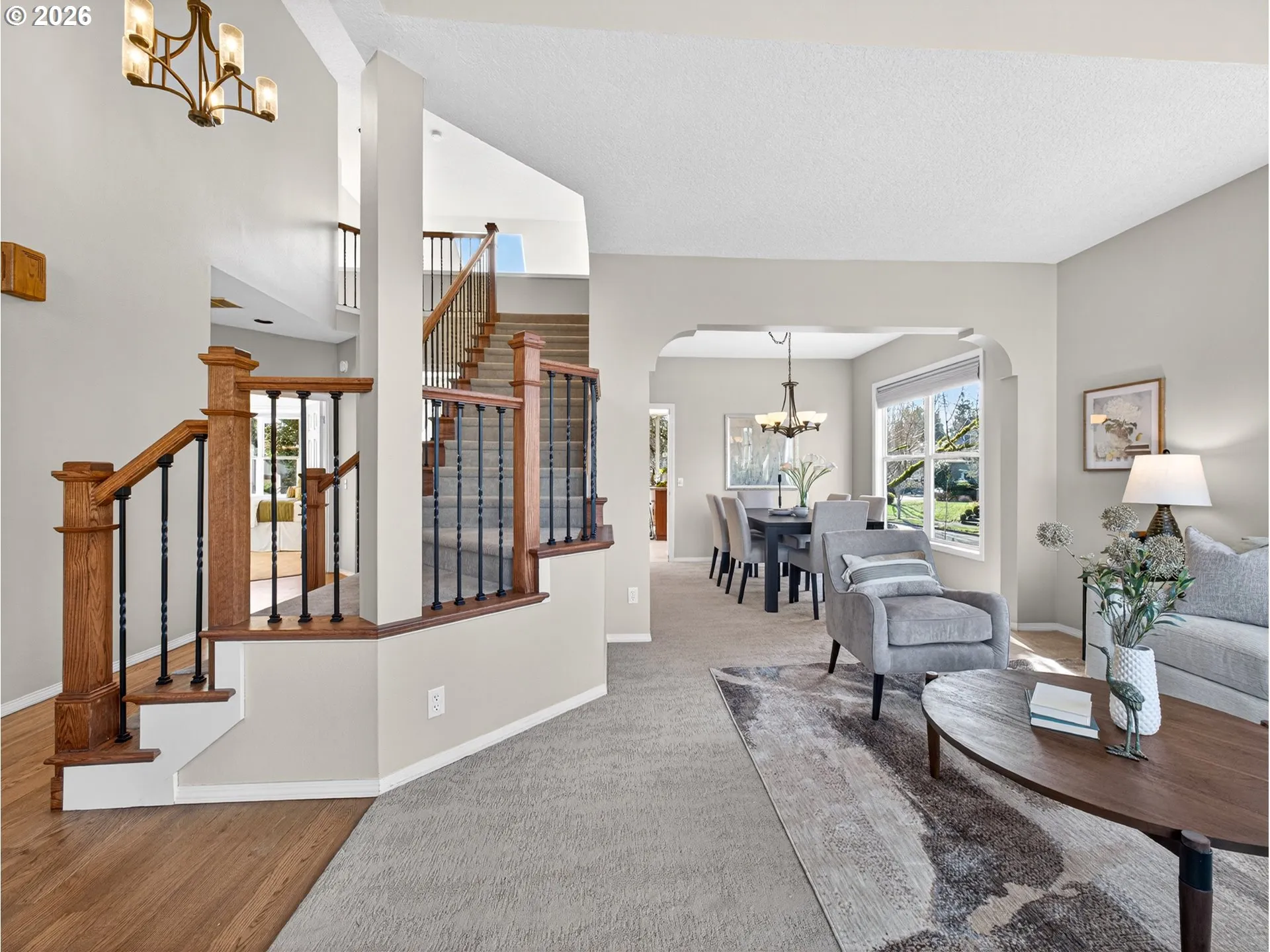4 bdrm + den. Beautiful Fox Hill home w/main-level living features light-filled vaulted living spaces, large windows & skylights. Living room opens to formal dining room. Updated kitchen has slab granite countertops, ss applcs, soft close cabinetry, eating island & walk-in pantry. Sunny nook w/floor-to-ceiling windows & door to large patio. Family room has French doors, vaulted beamed ceiling, stone fireplace & built-ins. Main level primary suite has updated tiled bathroom w/dual sinks & soaking tub. Main level den w/French doors & nice size closet w/organizer. Versatile bonus room & den work well as additional bedrooms. Fenced backyard w/extended paver patio, grassy area & auto sprinklers. Oversized 3-car garage w/storage closet & 240V for EV Charging. Ring doorbell. Exterior paint (2023). Gas furnace & heat pump (2022). Located near Legacy Meridian Park Hospital, Browns Ferry & Atfalati parks, Tualatin Greenway Trail, Bridgeport Village, commuter transportation, and 1-5 & 1-205 freeways.