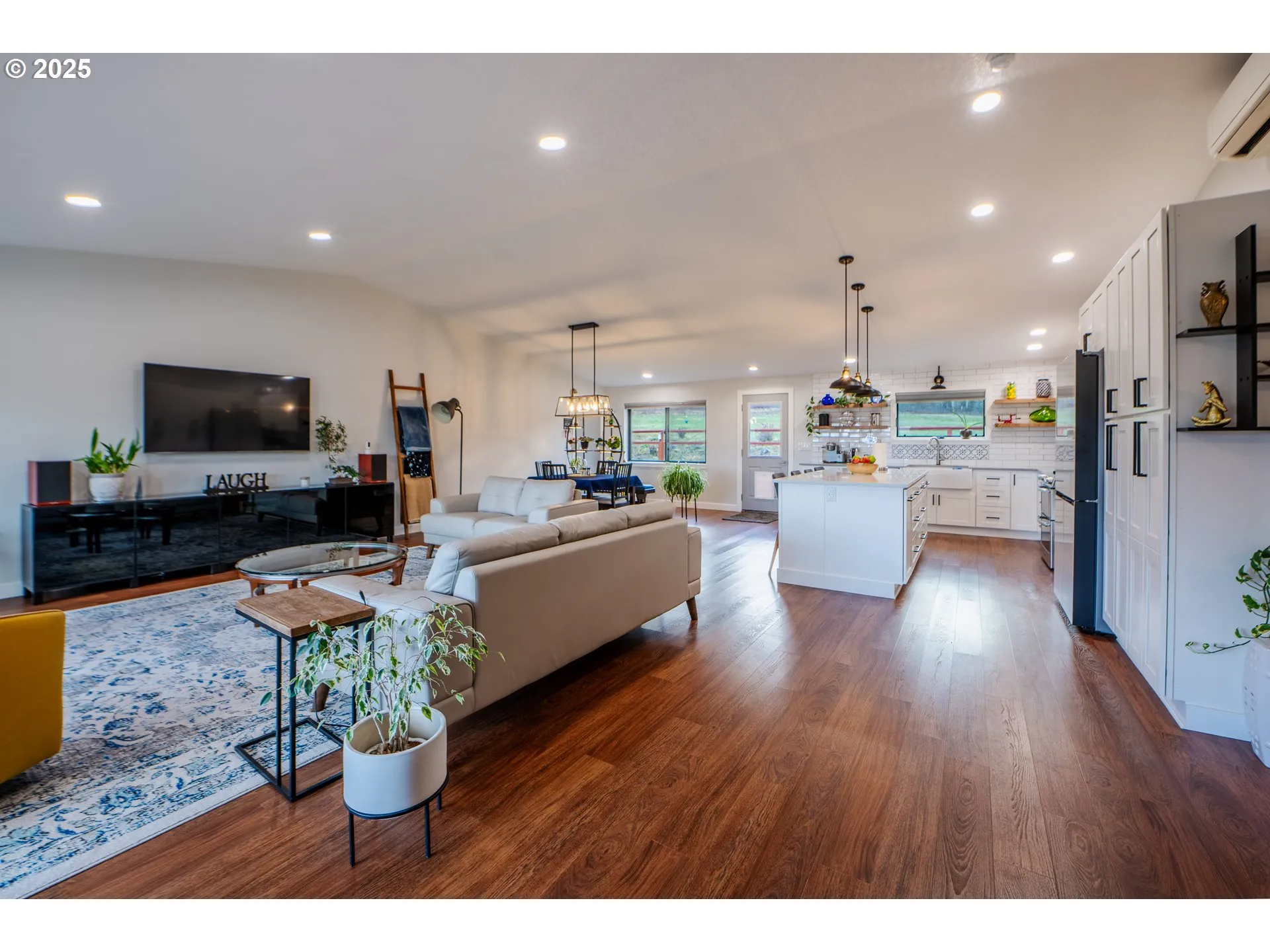Discover this completely updated single-level contemporary country home on 20 sprawling acres in Lyle, Washington. This 3-bedroom, 2-bathroom property offers 1,704 square feet of thoughtfully designed living space with an open floor plan that seamlessly connects the gourmet kitchen to the vaulted ceiling living room. The heart of the home features a large kitchen with quartz countertops, counter-to-ceiling tile backsplash, eating island, and propane range. LVP flooring flows throughout the home , while a cozy wood-burning stove creates a welcoming atmosphere. The spacious primary bedroom includes its own mini split, a walk-in closet, and an oversized walk-in shower. Storage enthusiasts will appreciate the massive amount of built-in storage throughout the home. Step outside to enjoy the large deck overlooking your private 20-acre retreat, complete with pasture land and a serene pond. The property includes 2 outbuildings: a 24×42 shop with carport cover and a 36×48 lean-to barn, perfect for equipment storage or livestock. Additional features include a chicken coop, dog run, and ample parking areas with minimal steps for easy access. Located off Centerville Highway, you’re just minutes from outdoor recreation opportunities including the nearby Klickitat Wildlife Area and Van Life Campground at Lyle Farmstead. This property combines modern updates with country living, offering the perfect balance of comfort and functionality on your own private acreage.