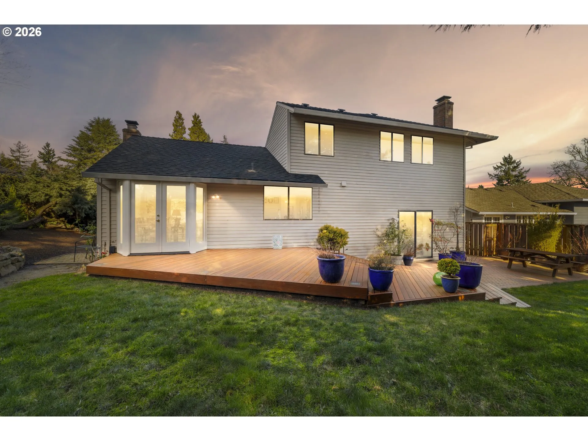 This is now a multiple offer situation. Any offers are due Monday, February 16th at 5:00PM. Seller response on Tuesday. Located at the end of a cul-de-sac in a desirable Tigard, Oregon neighborhood, this home opens with a wide, vaulted entry that leads into a vaulted living room filled with natural light.Engineered hardwood floors carry through the main living areas and the two fireplaces create comfortable gathering spaces throughout the home. The kitchen features granite countertops, a built-in range, electric cooktop, and a window that looks out to the backyard creating an easy connection between indoor and outdoor living.The home offers 4 bedrooms and 3 full bathrooms, including a spacious primary suite with a walk-in closet and walk-in shower. An updated vinyl door provides easy access to the deck. Out back, a multi-level deck and patio are surrounded by mature landscaping, a decorative rock wall, and a water feature, making it a private and inviting setting. A 50-year roof adds lasting value. This is a well-cared-for home ready for its next chapter.